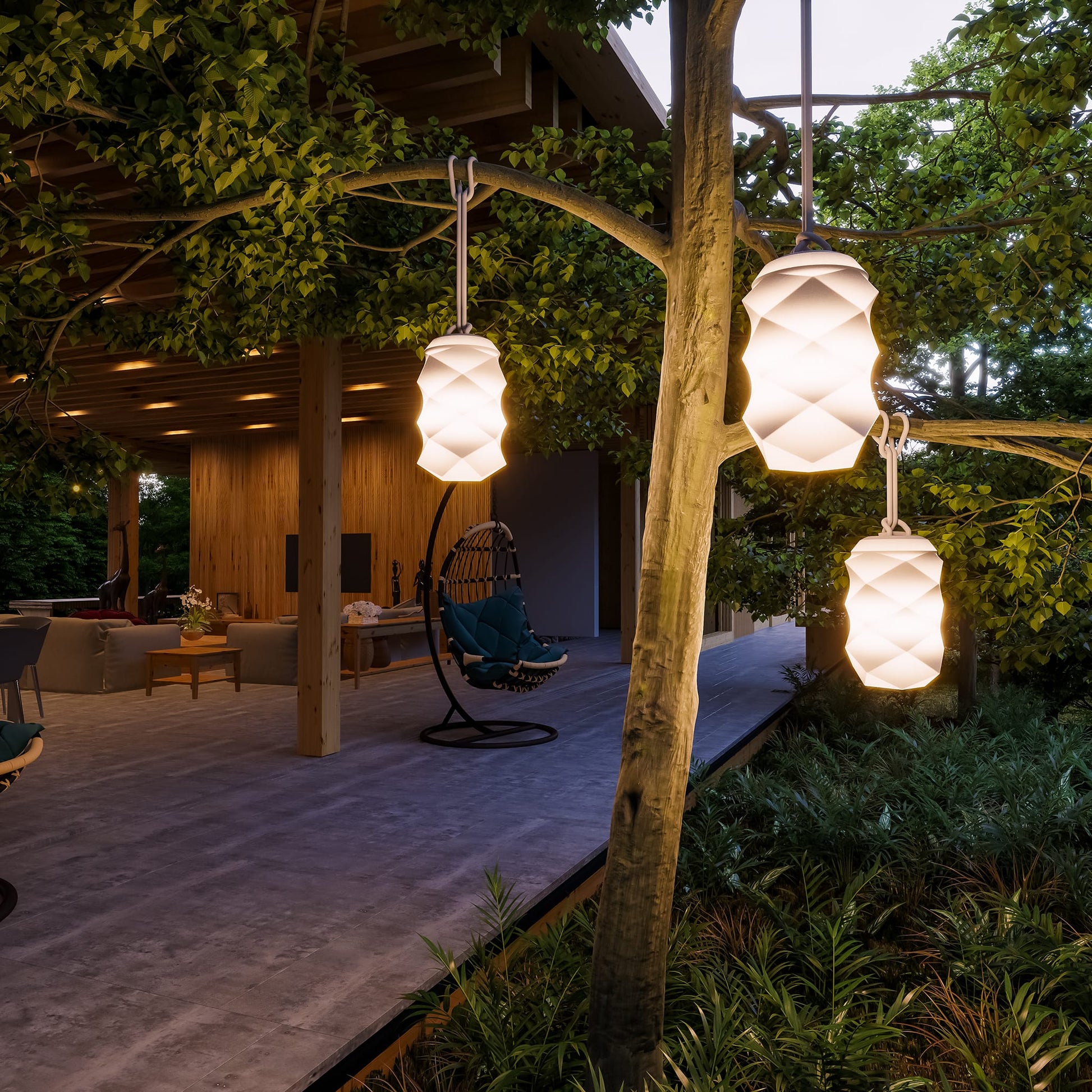 Introducing the Bita, a captivating LED hanging lamp from Newgarden, now available in Canada. The Bita lamp, with its unique design inspired by wooden posts used for mooring ships, is a striking addition to any outdoor setting or business decor. Perfect for illuminating gardens or adding a decorative touch, its dimensions of ø17.8 x 30 cm make it suitable for various spaces.