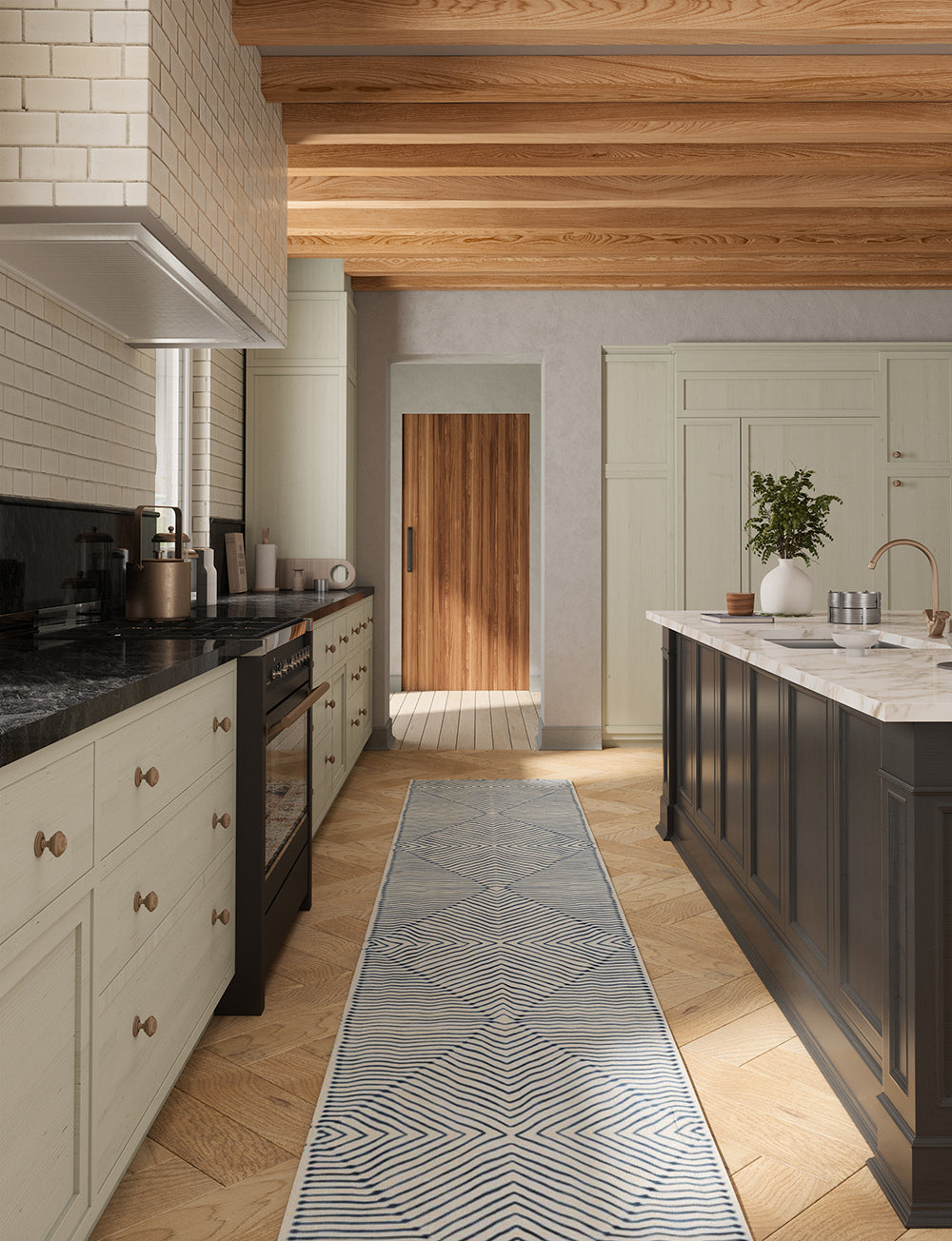Calator is a beautiful centerpiece with a modern/minimalist-inspired design and a range of sumptuous, saturated colors such as ivory white and slate blue lines. It effortlessly pairs with many different rug pads, making it a versatile choice for any room. The Calator collection offers two options: machine washable rugs or premium linen rugs that are easy to clean (although not suitable for machine washing).