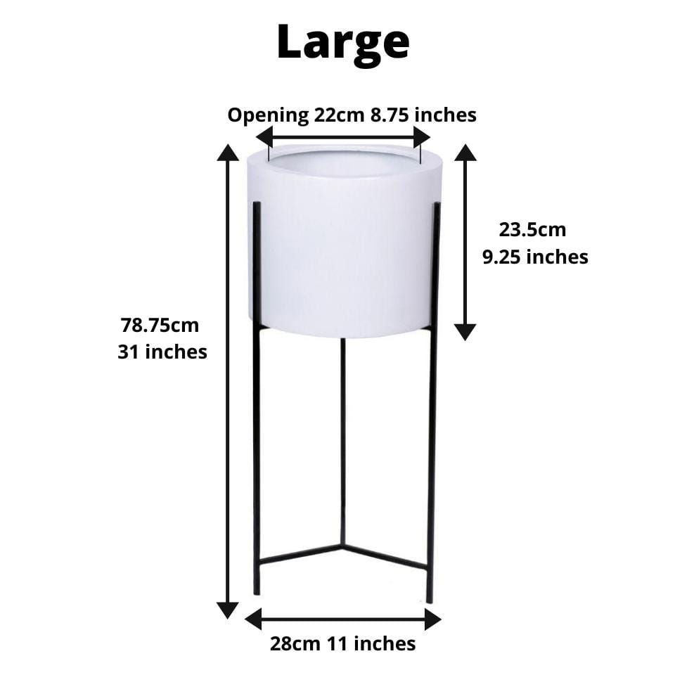 Cira - Jardinière blanche style milieu du siècle avec support en métal noir (Plusieurs tailles disponibles)