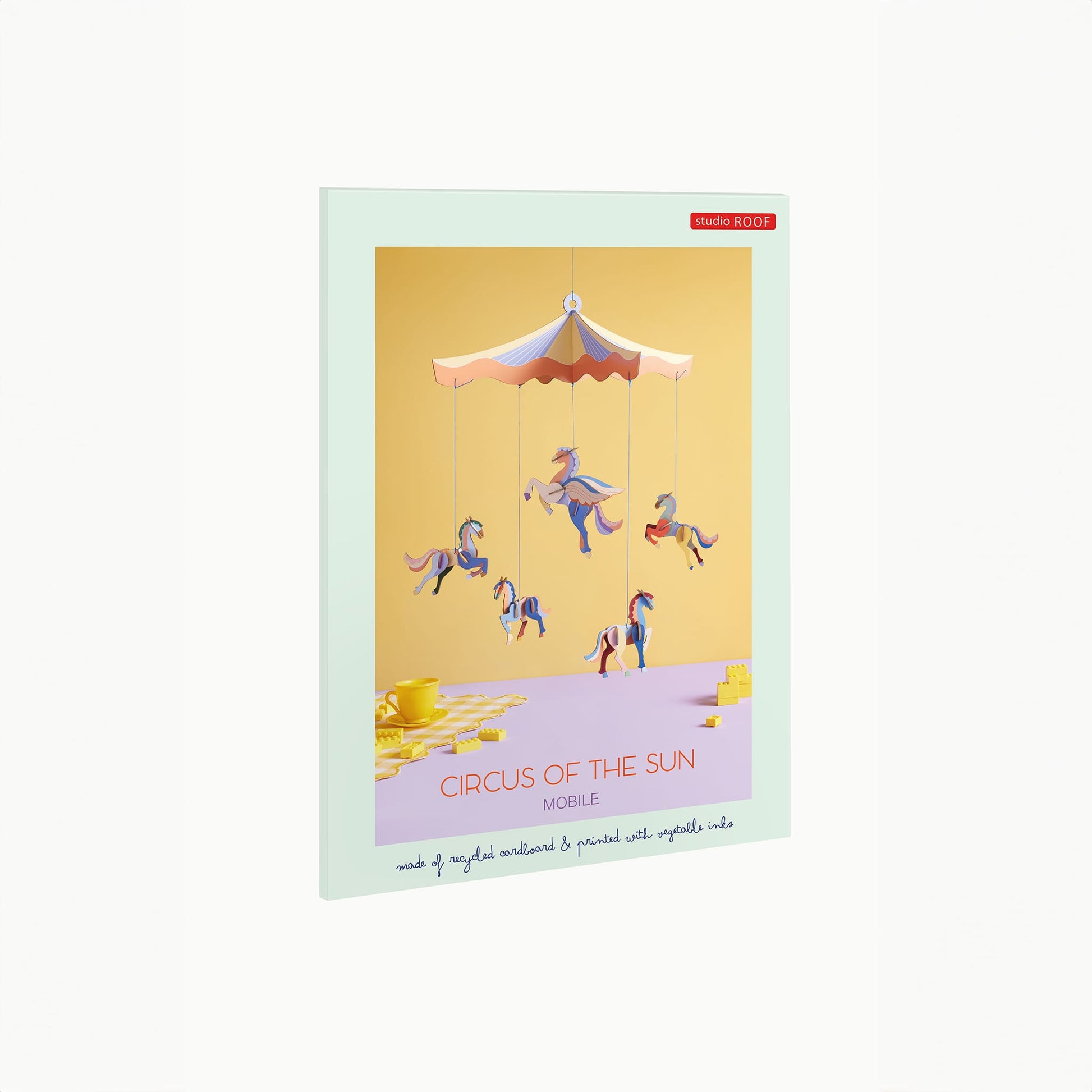 The Circus of the Sun by Studio Roof is a vibrant and imaginative baby mobile that brings a playful touch to your little one's room, perfect for sweet dreams and storytelling. Made from eco-friendly recycled cardboard and printed with vegetable inks, this sustainable 3D wall art piece arrives flat-packed for easy assembly.