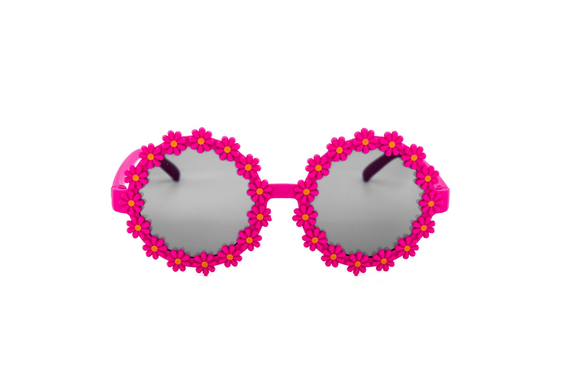 Daisy brings playfulness and charm to every sunny day. With a round silhouette ringed in cheerful 3D blossoms, this style is made for little trendsetters who love standing out. Available in sweet daisy white and bold fuchsia, these sunnies add a garden of fun to every outfit.