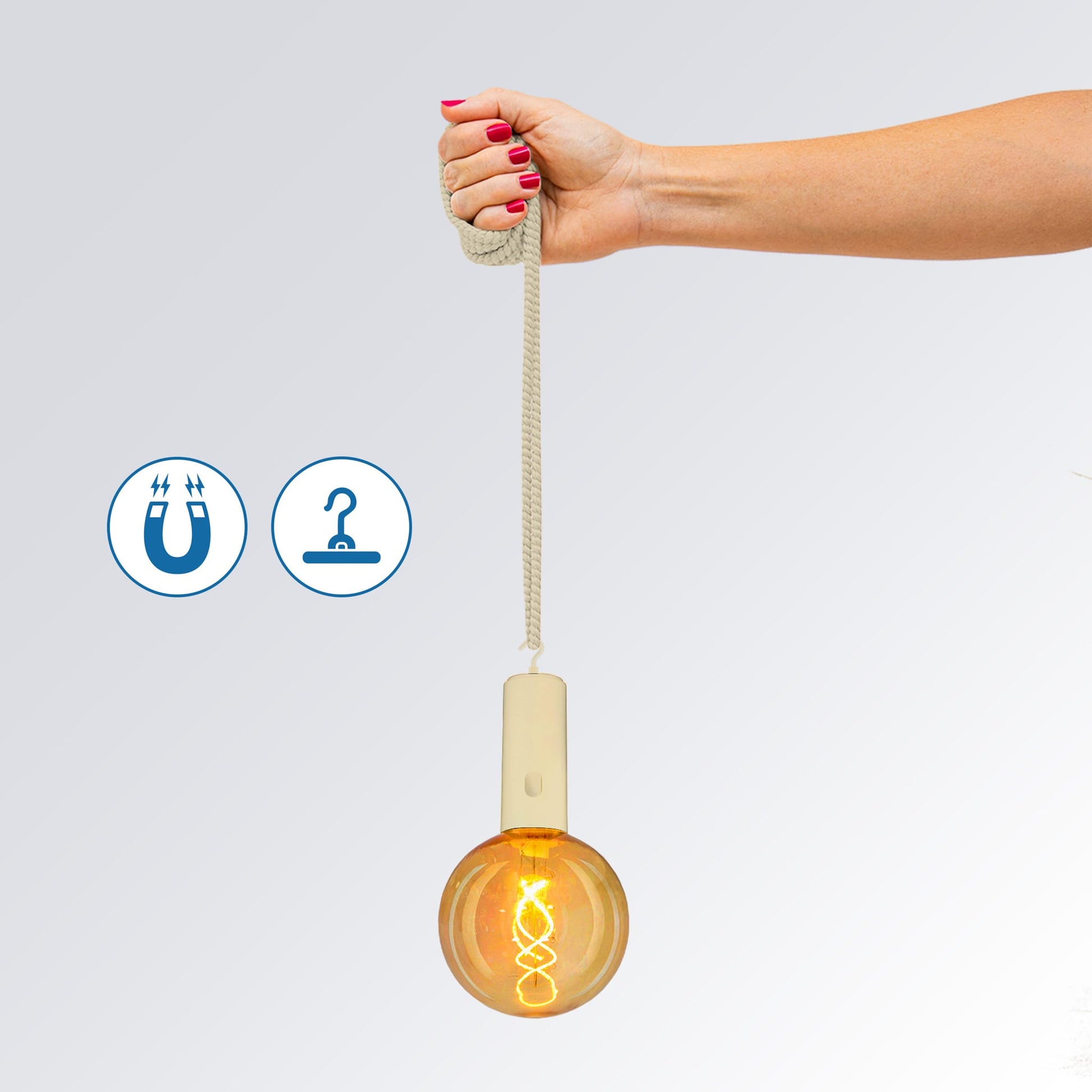 Experience the convenience of the Edy G125 wireless portable vintage bulb by Newgarden. No installation required - simply hang it or bring it near a metallic surface, and its magnetic base will securely adhere. With its high luminosity LED filament and durable plastic coating that resembles smoked glass, this bulb combines style and resilience.
