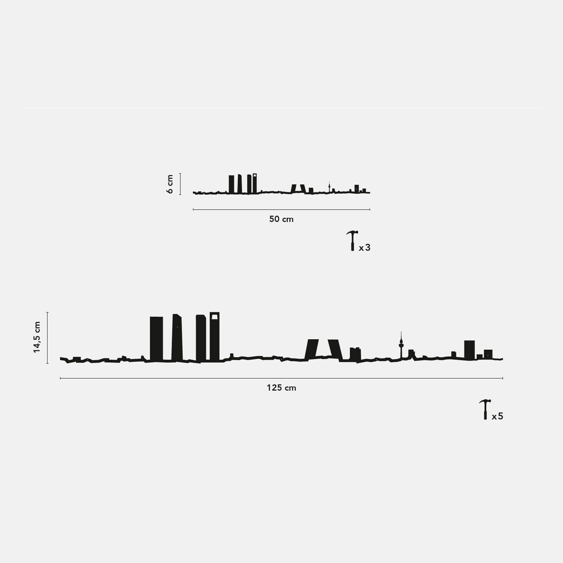 The Madrid Line art piece captures the dynamic skyline of Madrid, presenting it in sleek 50 cm and 125 cm silhouettes. This artwork features prominent architectural marvels such as the Cristal and PwC towers, the Gateway to Europe, and the Picasso Tower, beautifully showcasing the city's blend of modern and historical influences.
