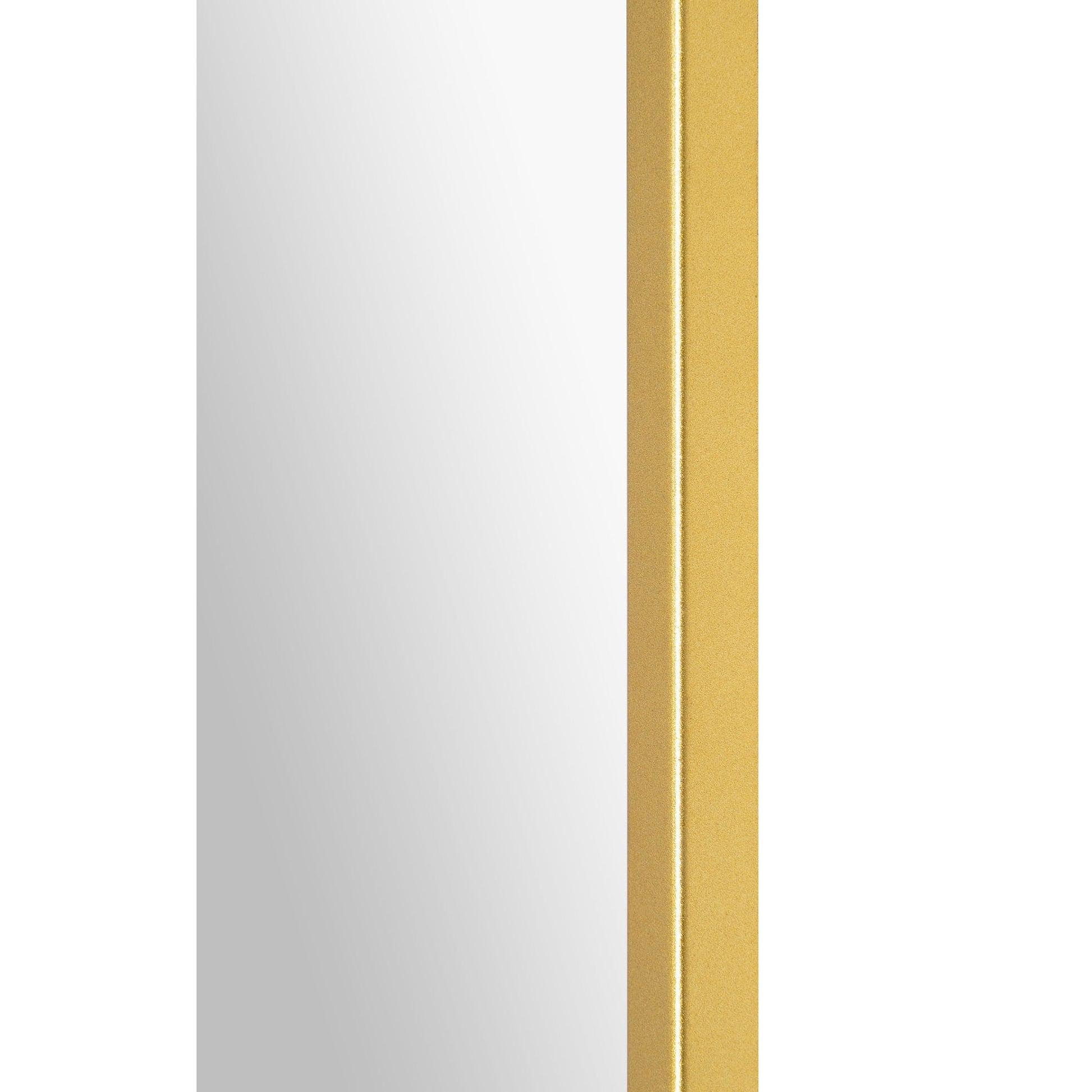 Possessing a modern and timeless quality at once, this mirror complements decor elements in its vicinity while making a stylish statement of its own. At 24 by 36 inches, it holds idyllic dimensions to rest atop a vanity or dresser. With a gold powder-coated iron frame, it is an optimal fit within a mid-century modern interior, with the ability to go classic when styled for such.