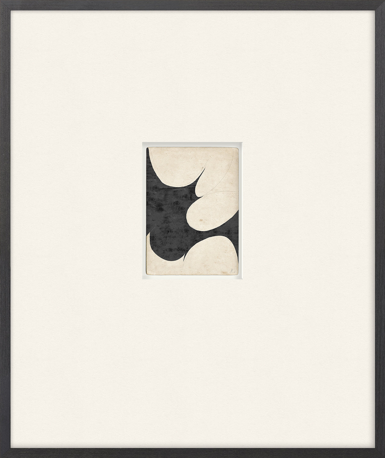 The shapely forms of these four contemporary, minimal compositions are well played out in graphic black and white. Each is framed with pebbled mattes and contrasting rustic charcoal frames. For a bigger punch, a larger, un-matted size is available as well.
