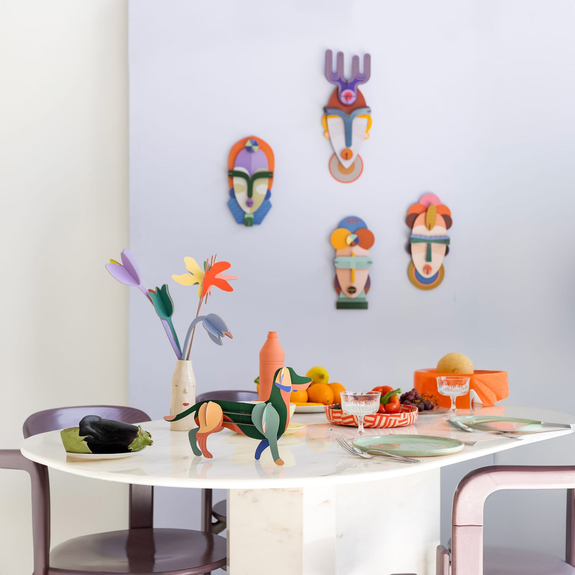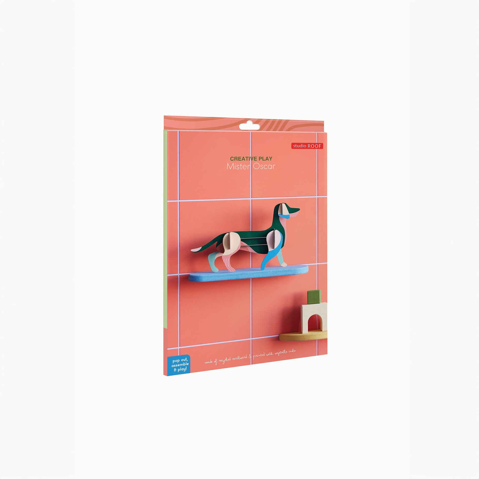 Mister Oscar by Studio Roof is a delightful 3D art piece that brings the playful charm of a dog into your home. Made from recycled cardboard and printed with vegetable inks, this eco-friendly ornament is as fun to assemble as it is to display.