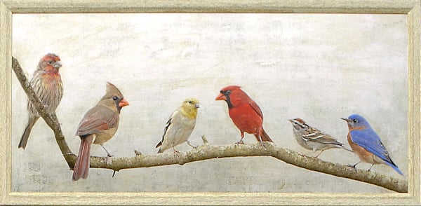 All of nature's favourites are hanging out together in this photo montage. Perfect for any cottage or modern farmhouse retreat. Image is sealed with a textured gel and framed with a white washed rustic profile.