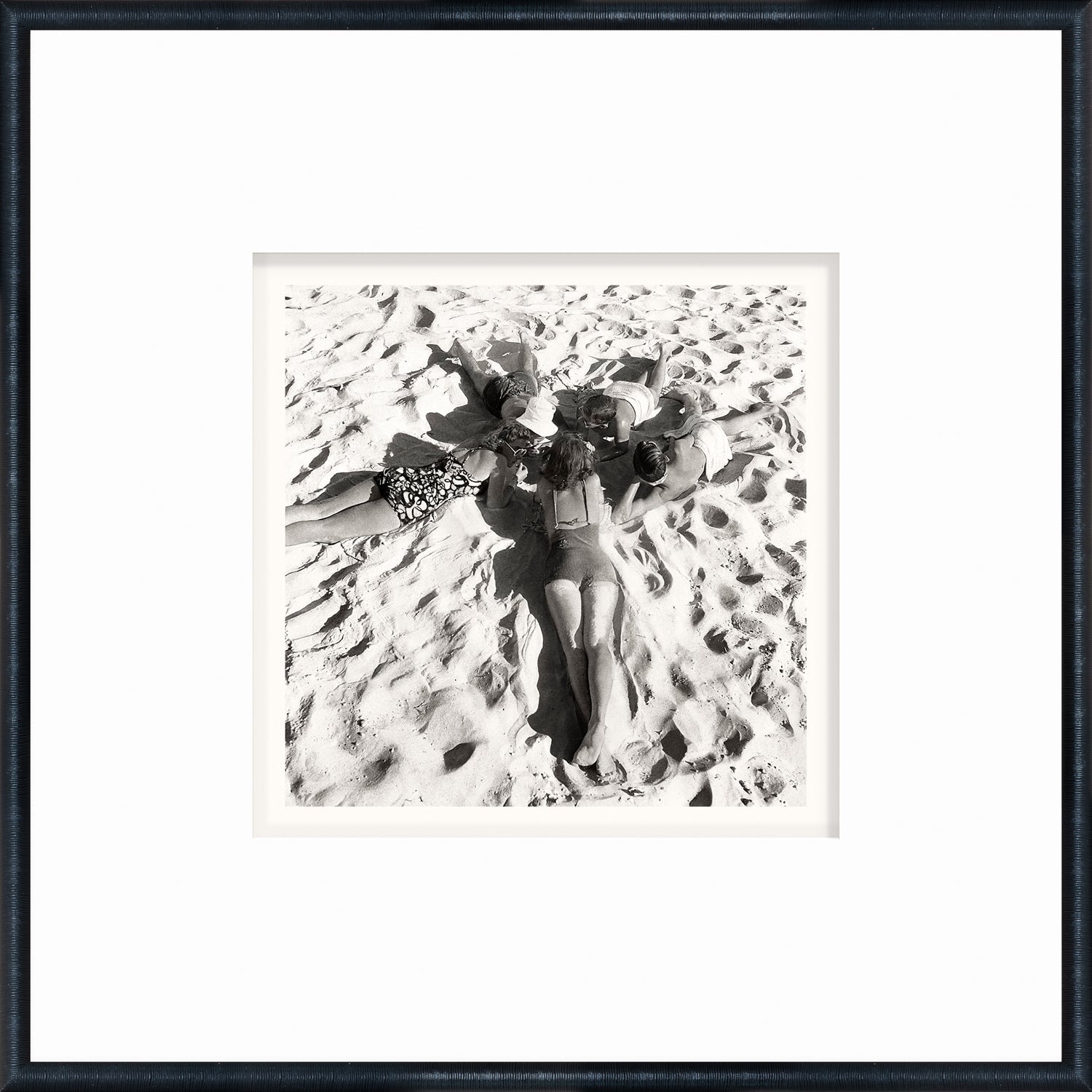 Idealized nostalgia, captured in black and white photography from the mid 20th century. Framed in a black moulding with a linear texture.