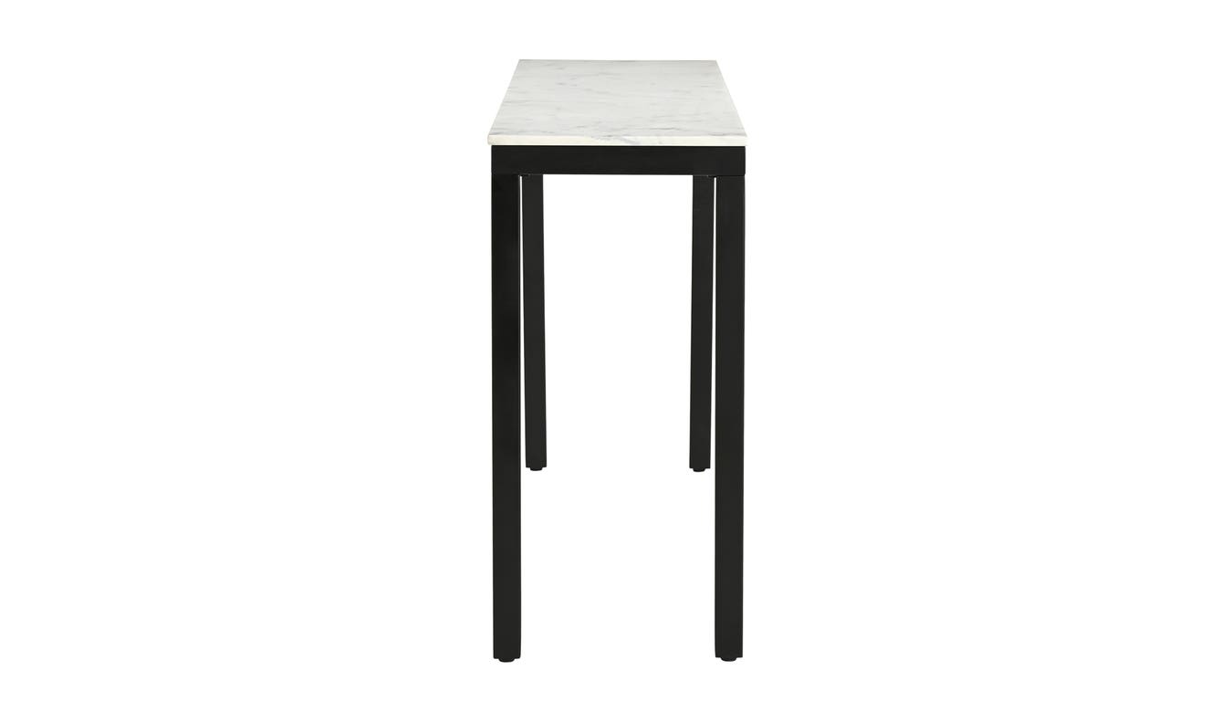 A simple, contemporary design that works in the entryway or home workspace, the Parson marble console table focuses on mixed material, pairing a natural white Banswara marble top with a sleek black powder-coated iron frame. Whether as a work desk or for display, the beauty of natural marble takes center stage with each piece’s unique color variation and veining as narrow clean lines promote open space and lightness.