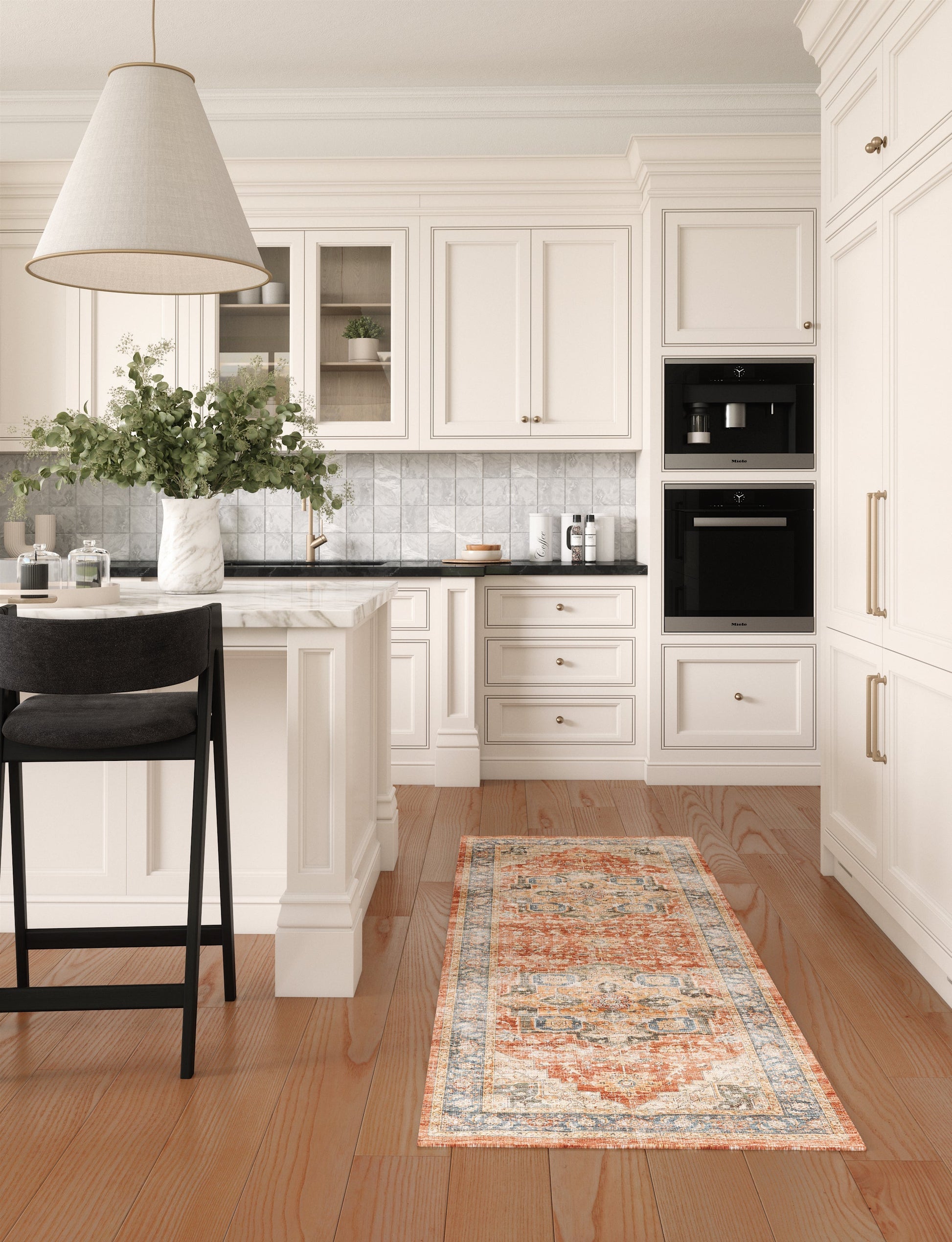 Rivka is a beautiful centerpiece with a Persian-inspired design and a range of sumptuous, saturated colors such as terracota and ocean blue. It effortlessly pairs with many different rug pads, making it a versatile choice for any room. The Rivka collection offers two options: machine washable rugs or premium linen rugs that are easy to clean (although not suitable for machine washing).