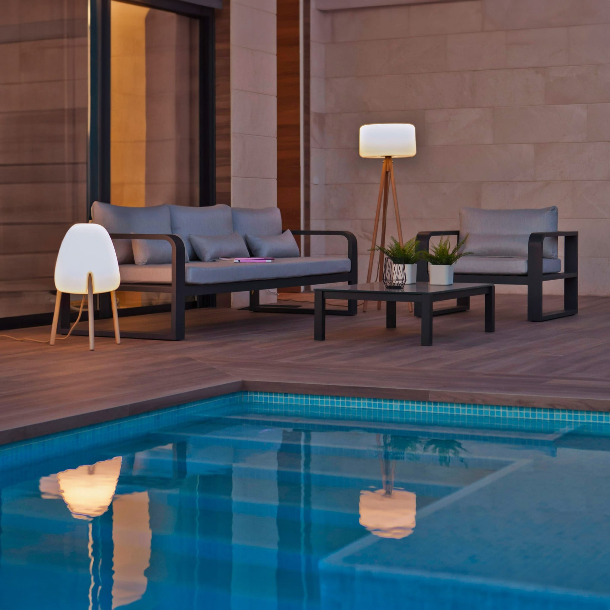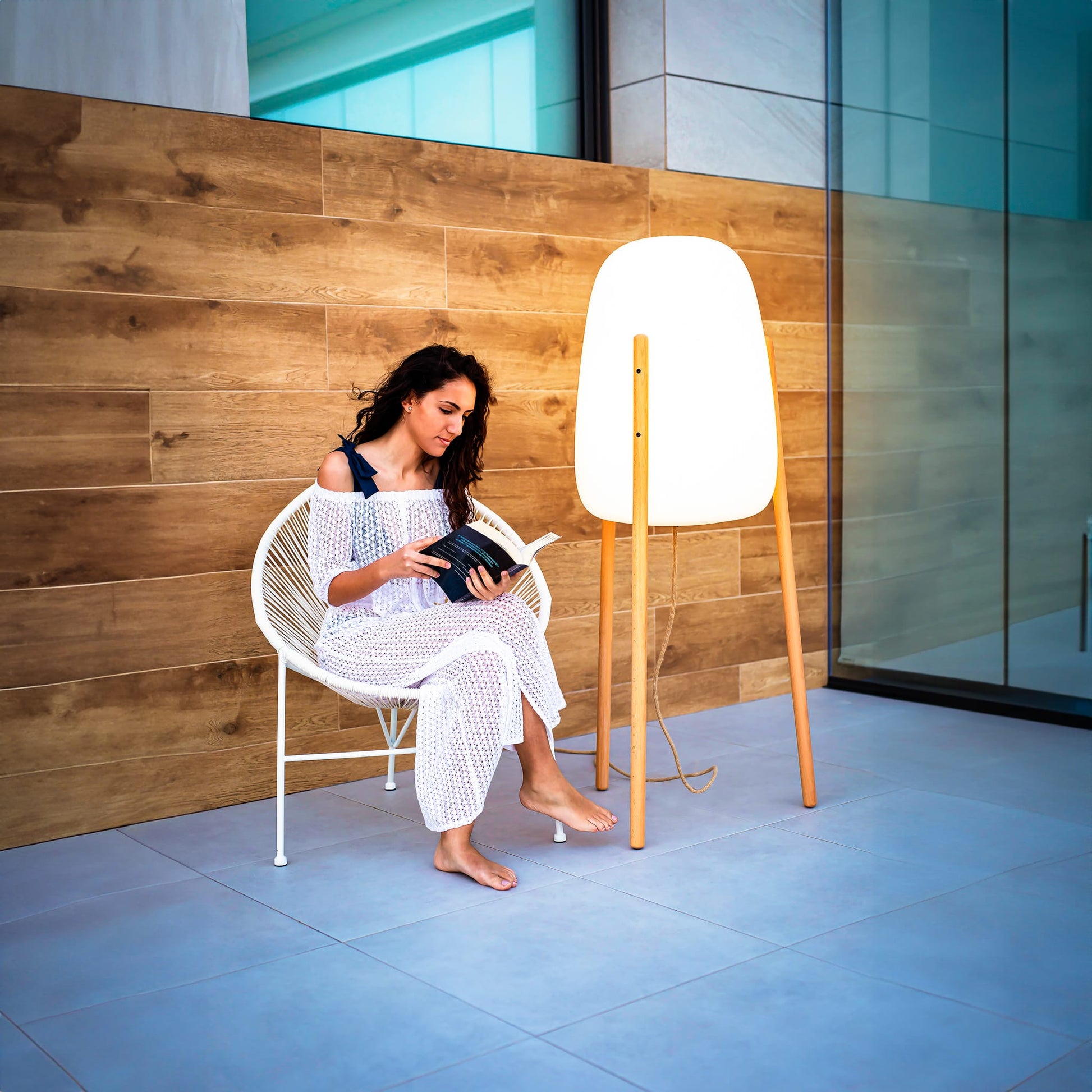 Rocket, crafted by Newgarden, is a one-of-a-kind floor lamp featuring elegant wooden legs, perfect for enhancing both indoor and outdoor spaces. Its harmonious blend of wood and polyethylene creates an essential addition to your home decor. Available in versatile In & Out finish(es), this lamp comes with a convenient remote control featuring an intensity dimmer, allowing you to adjust the temperature and light color to suit your preference.