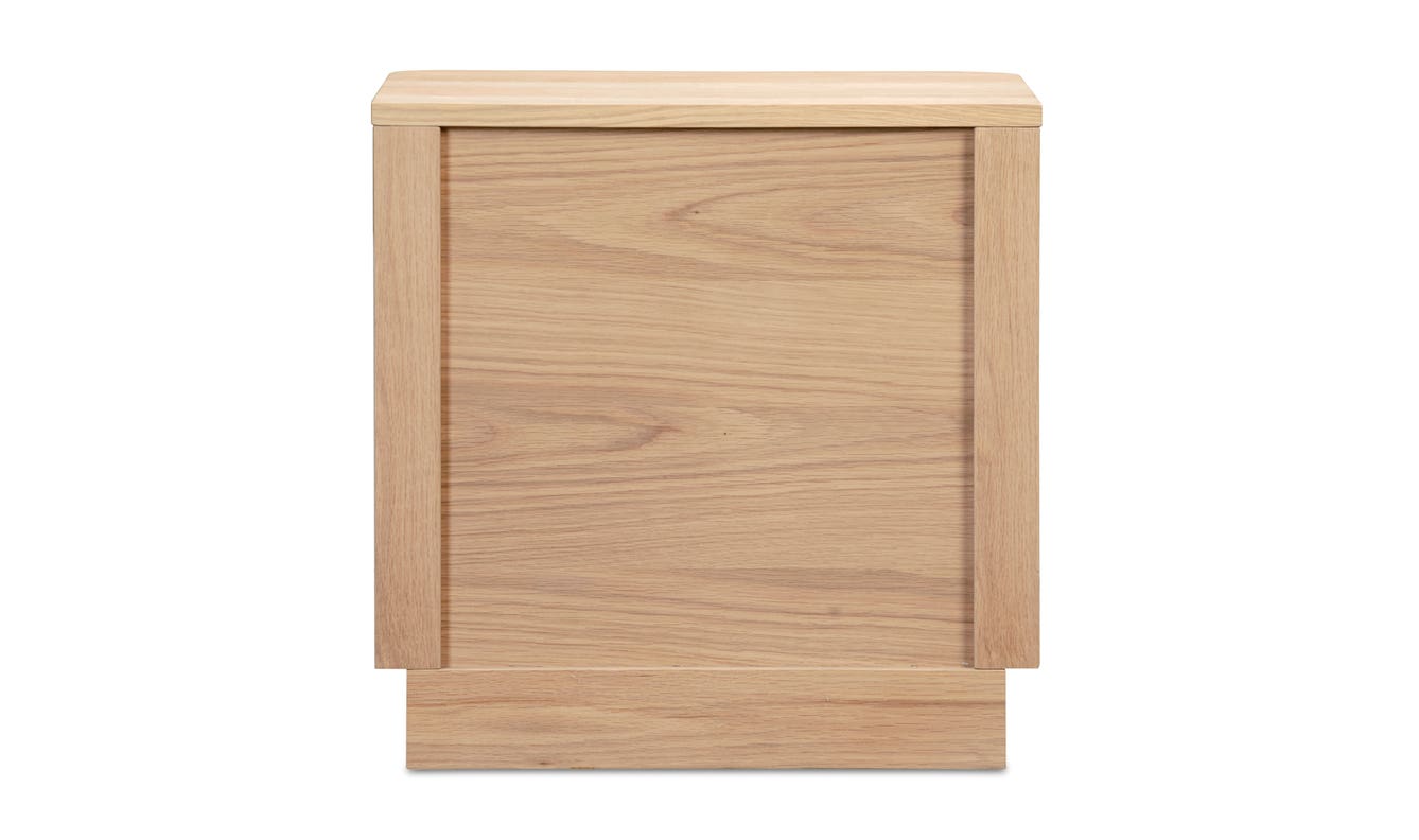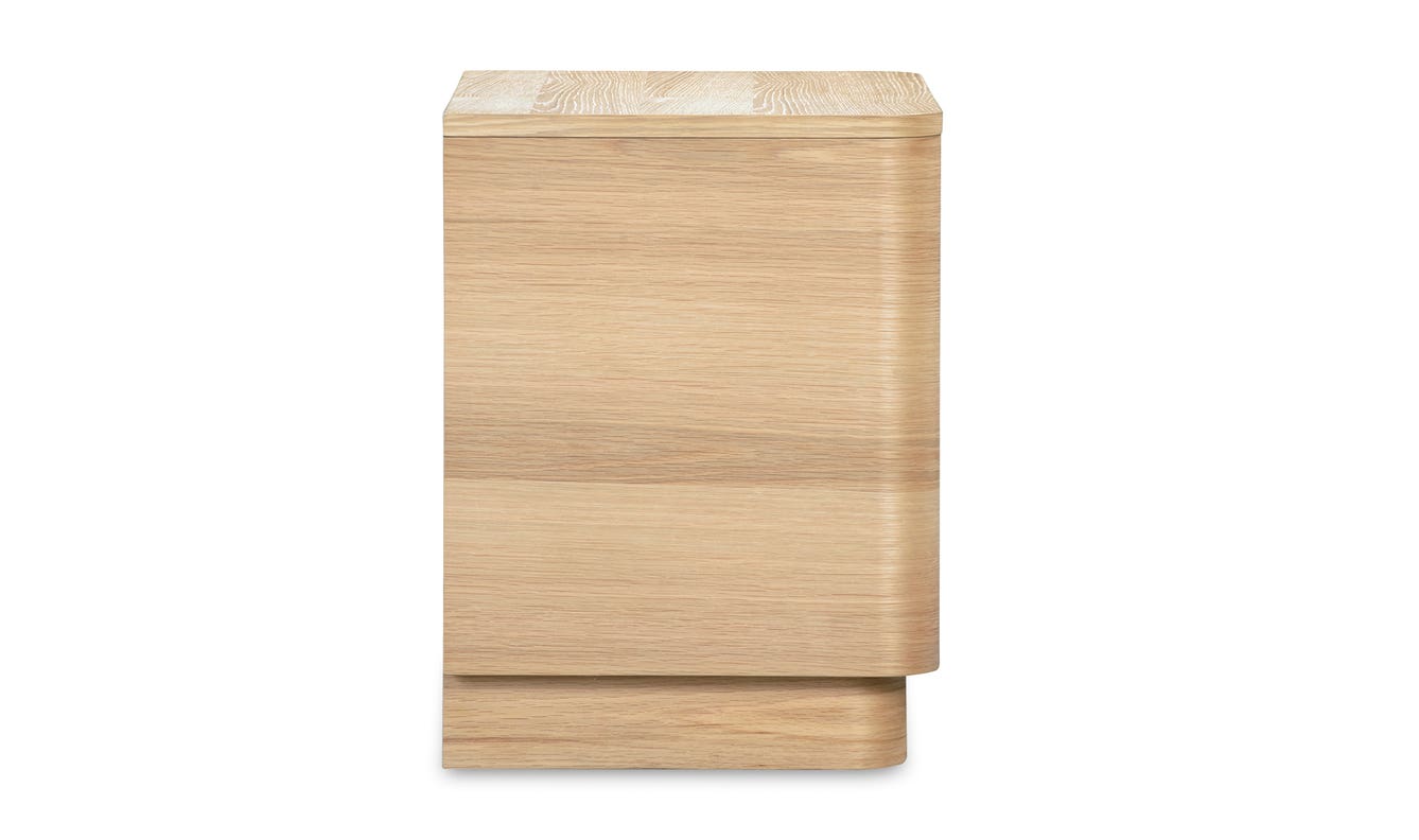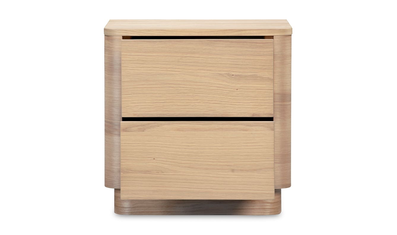 Natural allure meets minimalist design. The Round Off tall nightstand celebrates the captivating tones of natural wood grain, seamlessly integrated into a soothing design, embracing natural beauty and character. This tall nightstand boasts gently rounded corners and two large, smoothly gliding drawers that reveal generous storage space while embracing oak's natural beauty and character.