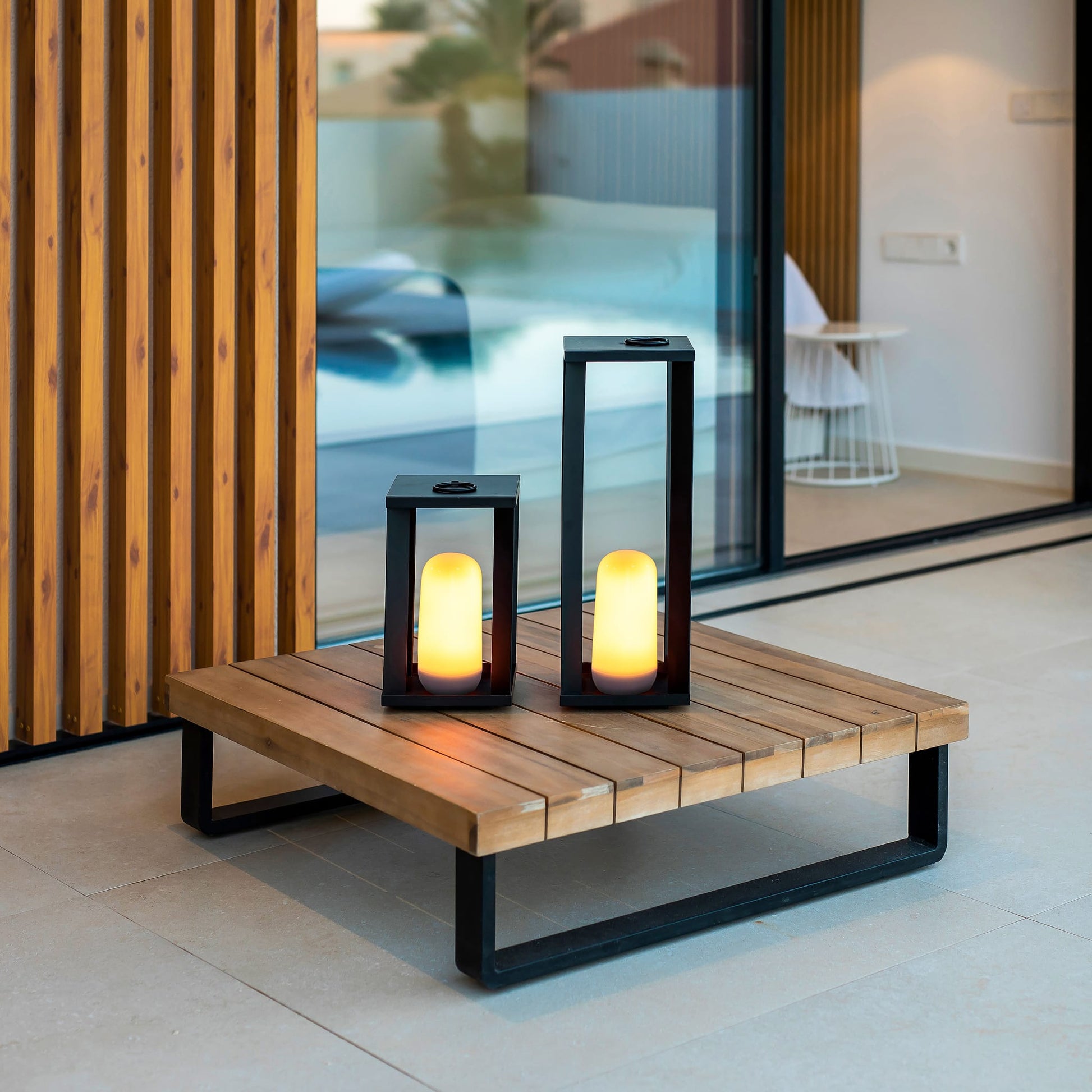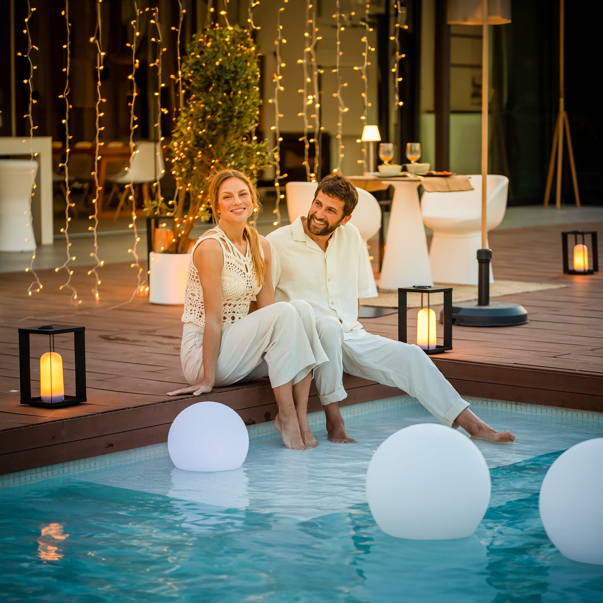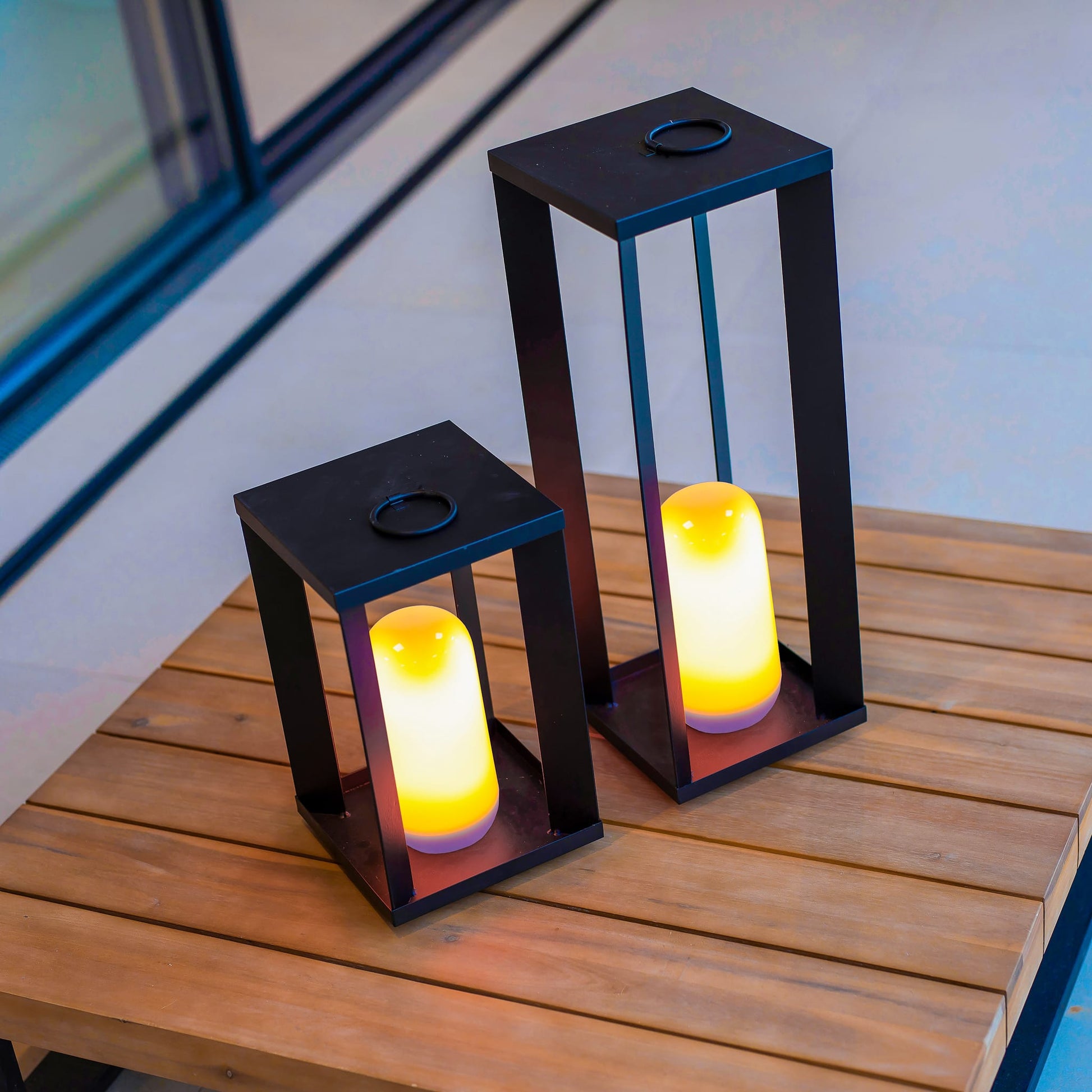 The Siroco metal lantern by Newgarden is a stunning addition to any garden or outdoor space, and it's incredibly easy to set up. Simply bring the bulb near the metal base, and its integrated magnet will securely attach it. This innovative design makes the Siroco lantern a must-have for anyone looking to spruce up their outdoor decor. The included remote control allows you to easily adjust the bulb's brightness, turn it on and off, and choose between fixed light or flame effect functions.