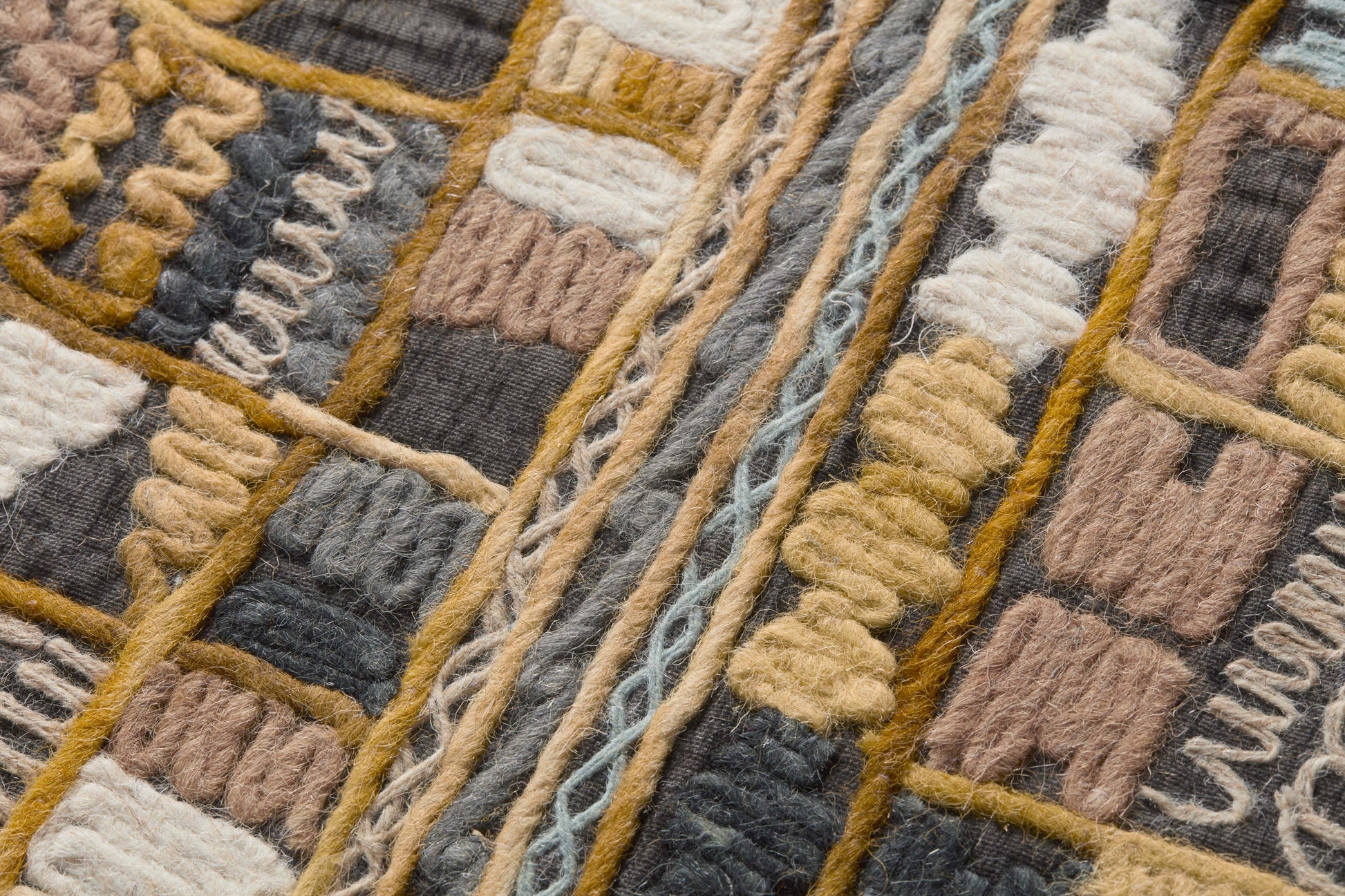 Reminding us of a day when the collaborative nature of a village was necessary for success and survival, we take inspiration from the time-honored textile traditions of rural Southern Iraq. Sommer was created in India using the same hand dyed colors and embroidery skills.