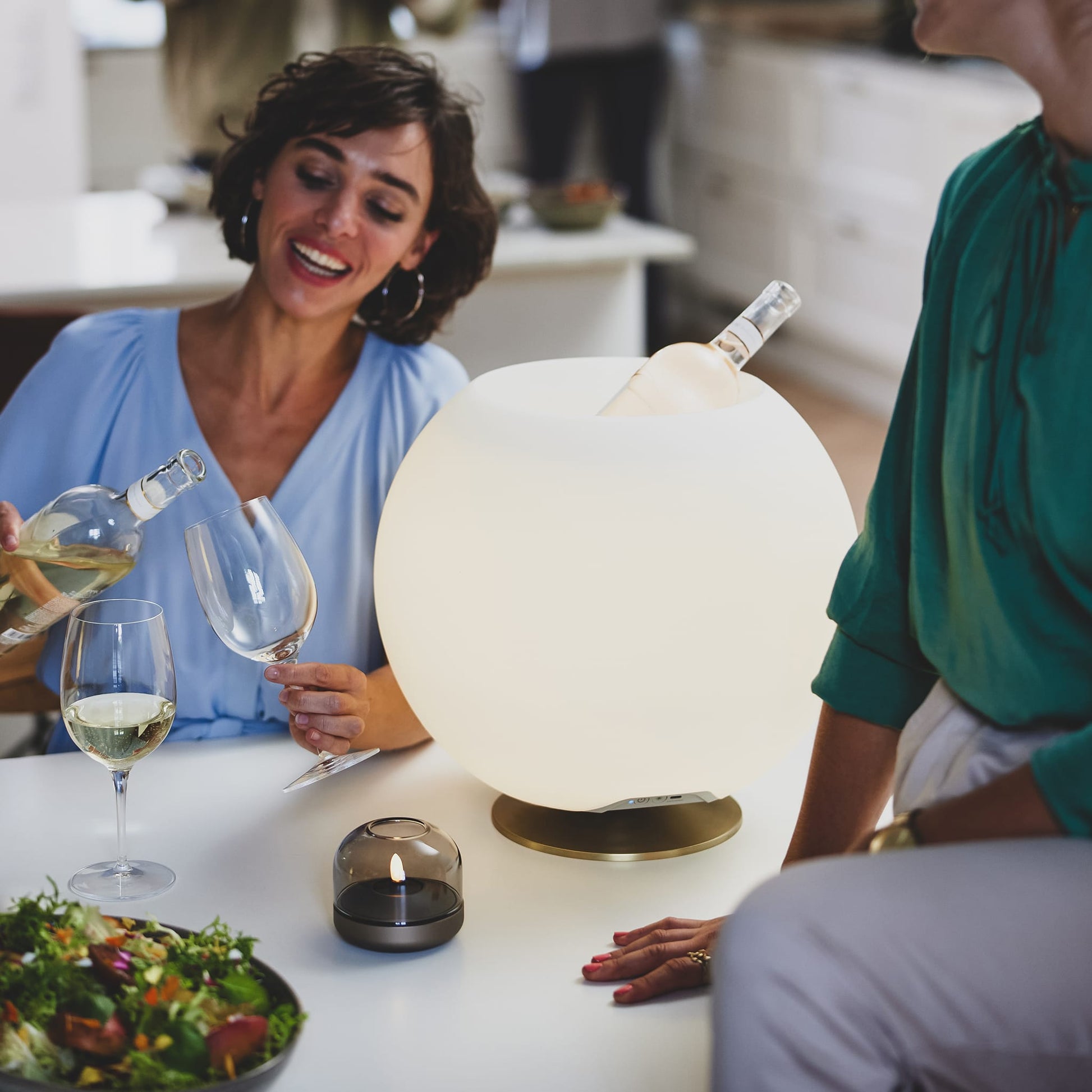 After the huge success of our Synergy, kooduu joined forces with the famous Danish design studio Jacob Jensen Design, and created a new design icon, Sphere. This smooth and round-shaped drinks cooler and speaker lamp evenly distributes dimmable light and balanced sound thanks to Kooduu’s Bright Sound Technology™ and the geometrical and minimal approach from Jacob Jensen Design.