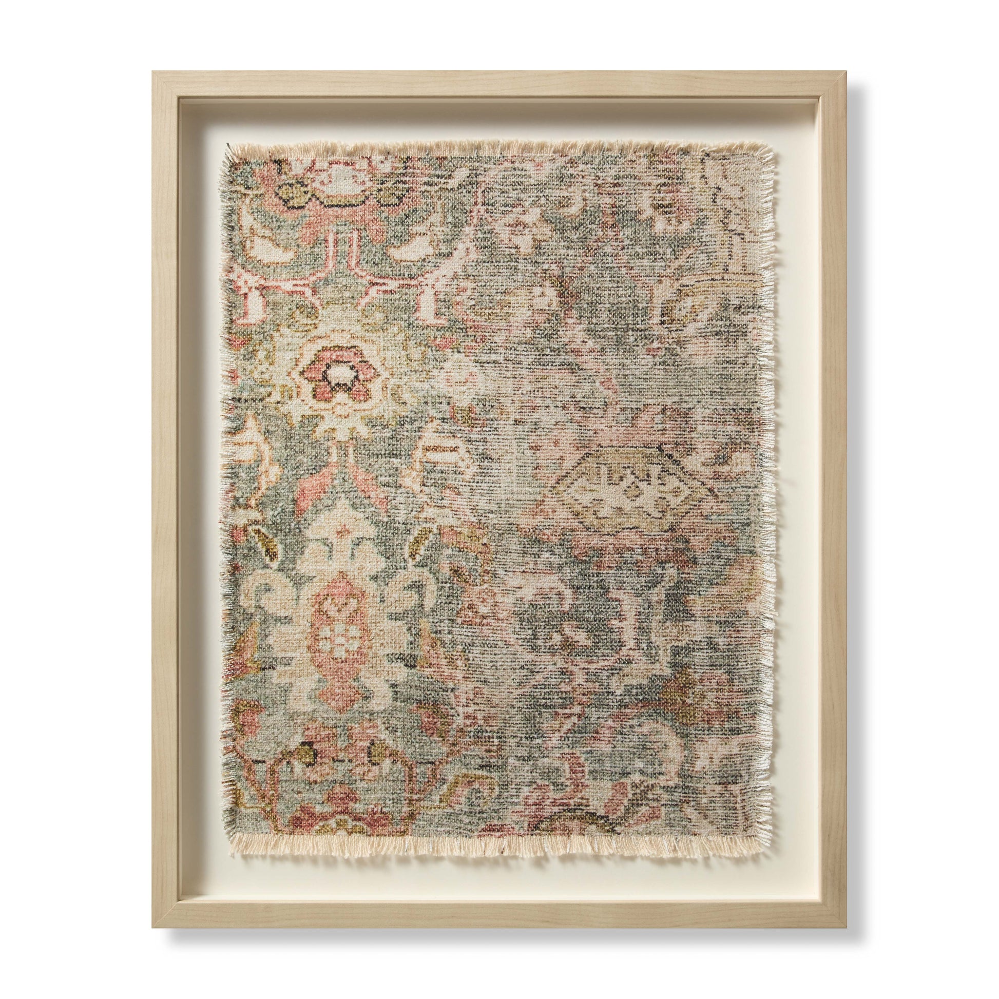 Timeless design and printed textiles are combined to create sophisticated framed wall art. The soft color palette and mix of distressed and traditional-inspired motifs bring a vintage sophistication to any décor space.