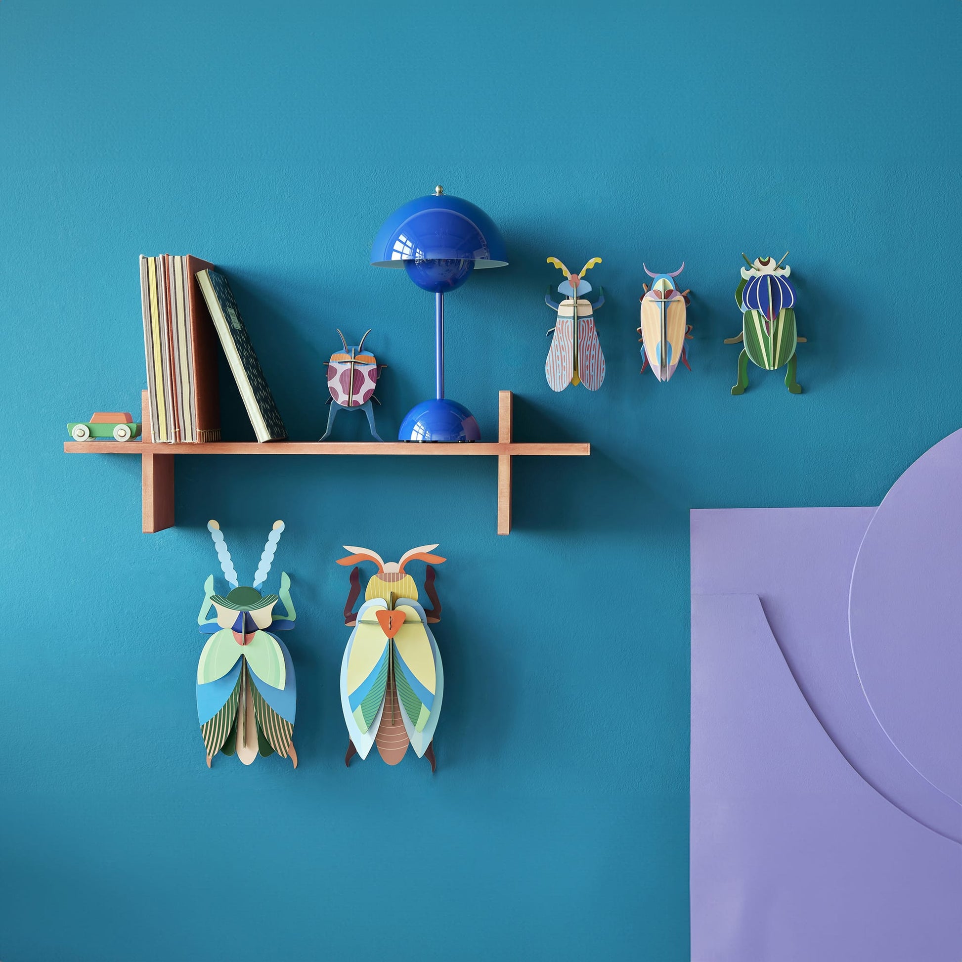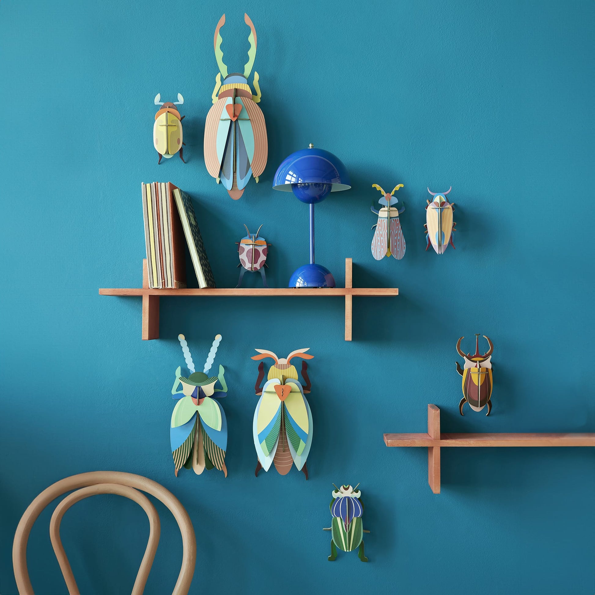 The Striped Wing Beetle by Studio Roof brings the captivating beauty of insects into your home, showcasing their importance to the earth's vitality. Crafted from recycled cardboard and printed with vegetable inks, this eco-friendly 3D wall art is both sustainable and eye-catching. With its vibrant colors and graphic patterns, the beetle makes a striking insect ornament for any room.