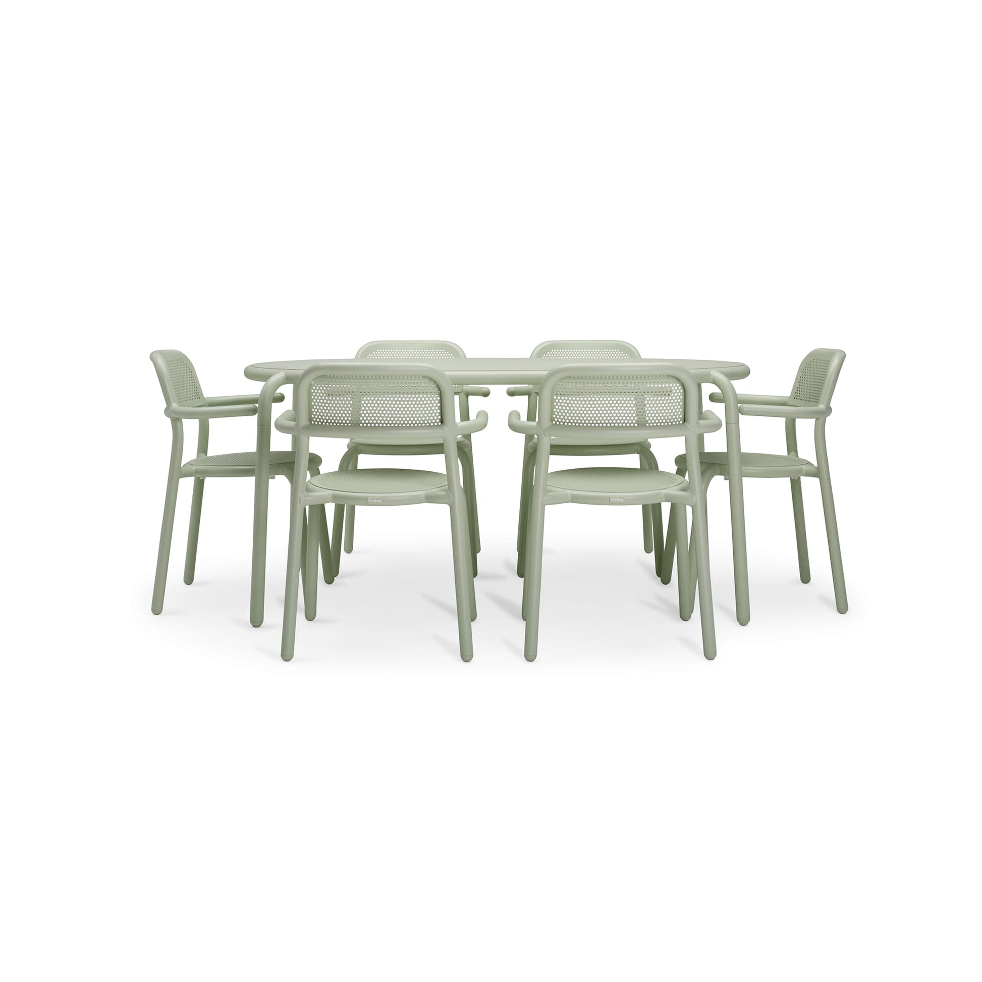 The ambiance is the name of the game with Toní Tavolo. Up to six people can be seated around it: dining, enjoying a few drinks, playing cards a little too competitively, you name it. The generous tabletop and friendly, rounded corners of this contemporary outdoor dining table invite everyone to pull up a chair and join in. Combine it with a few Toní Chairs. Or with Bankski, which is exactly the same length as the table. Pure coincidence. Or perhaps not.