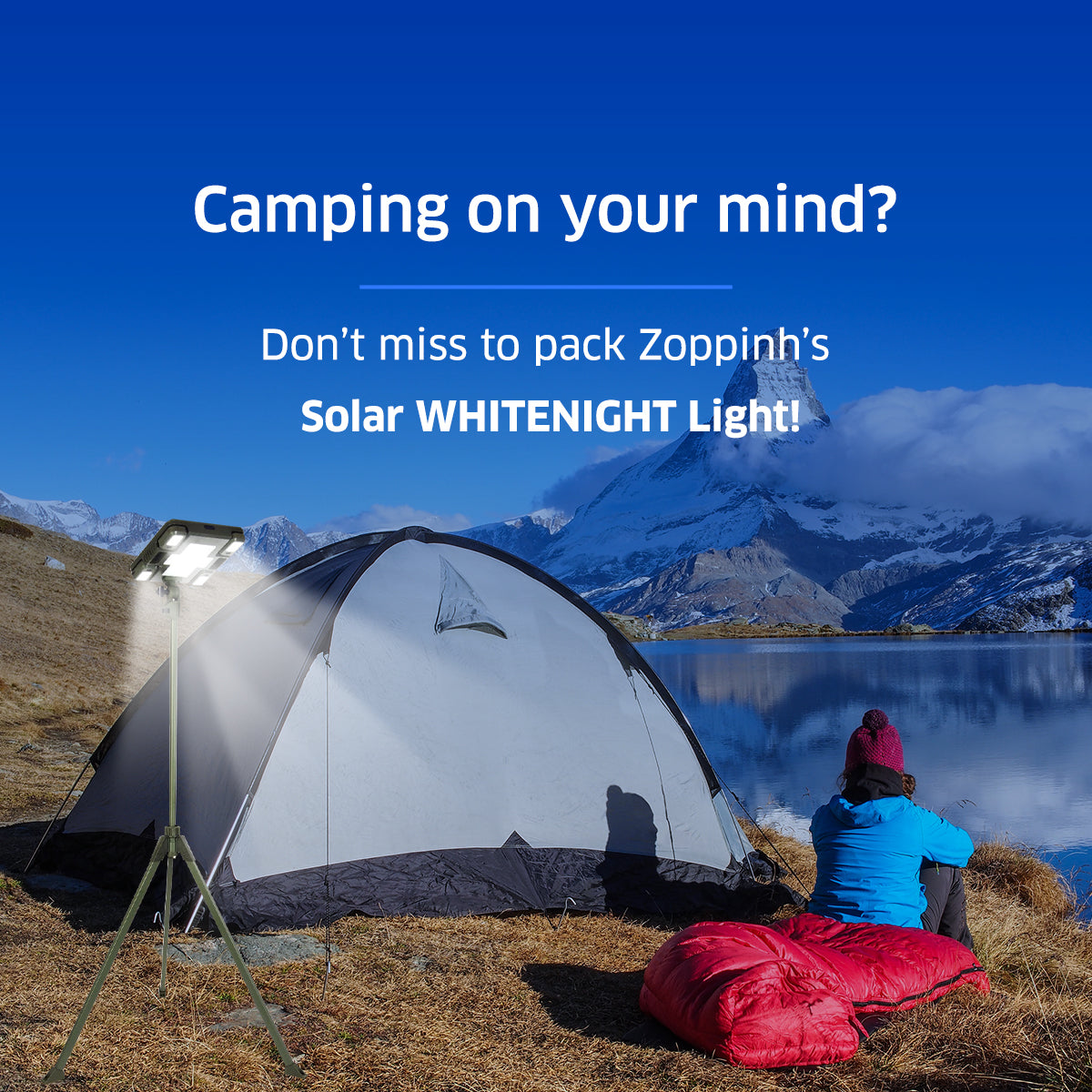 & Carry CaseBATTERIES INCLUDED Yes. Lithium Rechargeable LUMENS 1100 POWER SOURCE Battery Operated + Solar Powered MOSQUITO REPELLENT FEATURE Yes, For 4 Multi Mode Side Lights INCLUDED IN THE BOX Light + Tripod + Charging Cable + Manual + Carrying Bag WARRANTY 6 Months