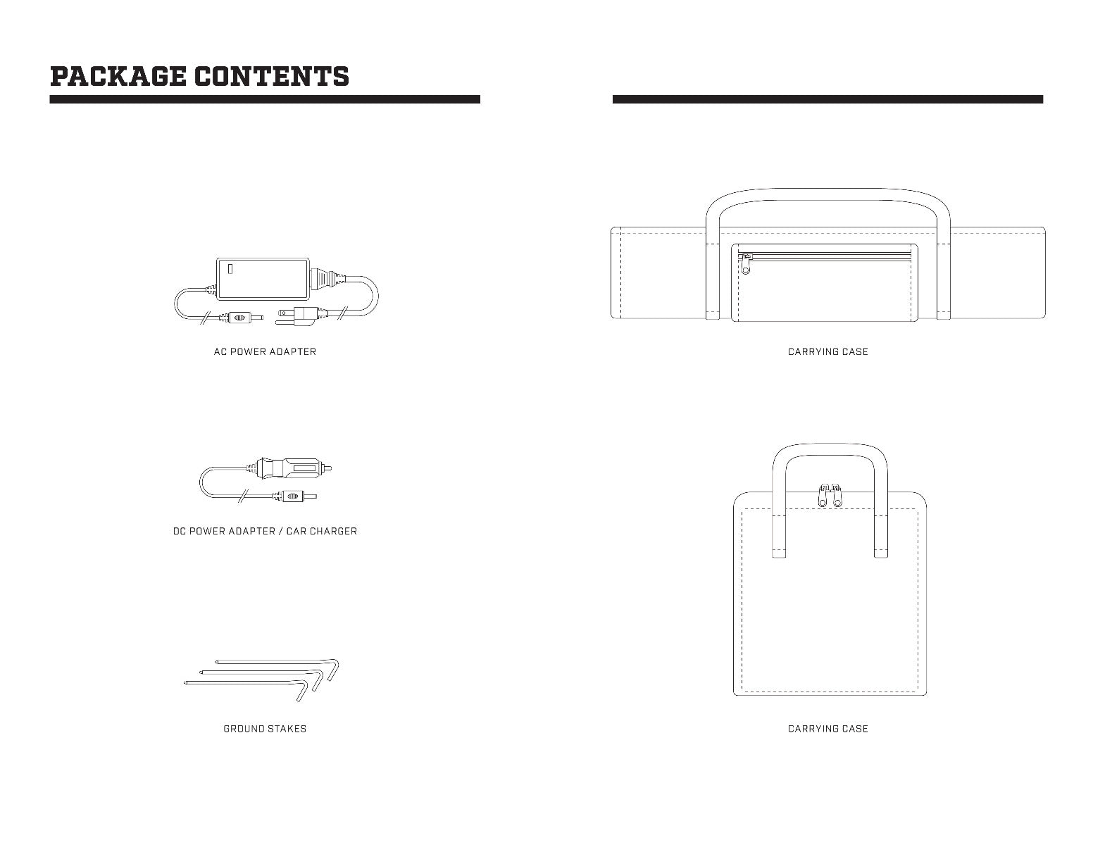 - SOLAR, A/C, D/C CHARGING Option (Adapter Included)