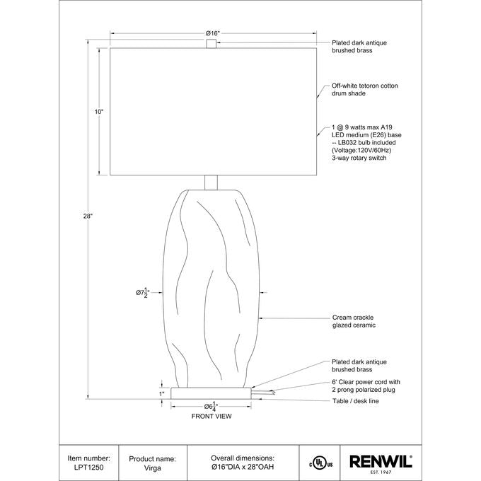 - OAH: 28''H - SHADE: DIA-16 X 10''H