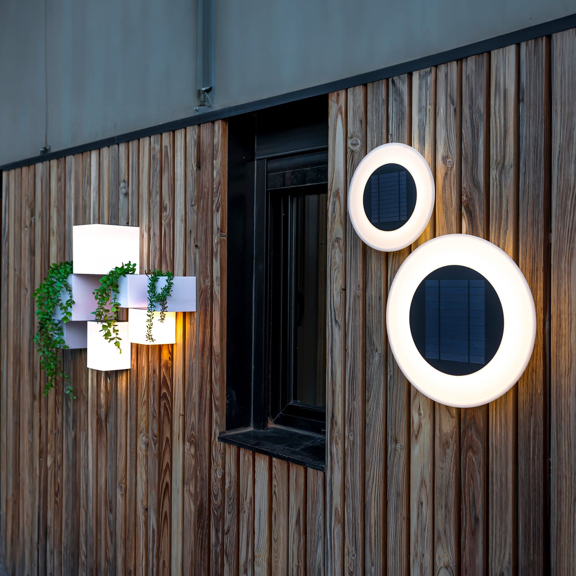 Wally, solar-powered recycled wall light.