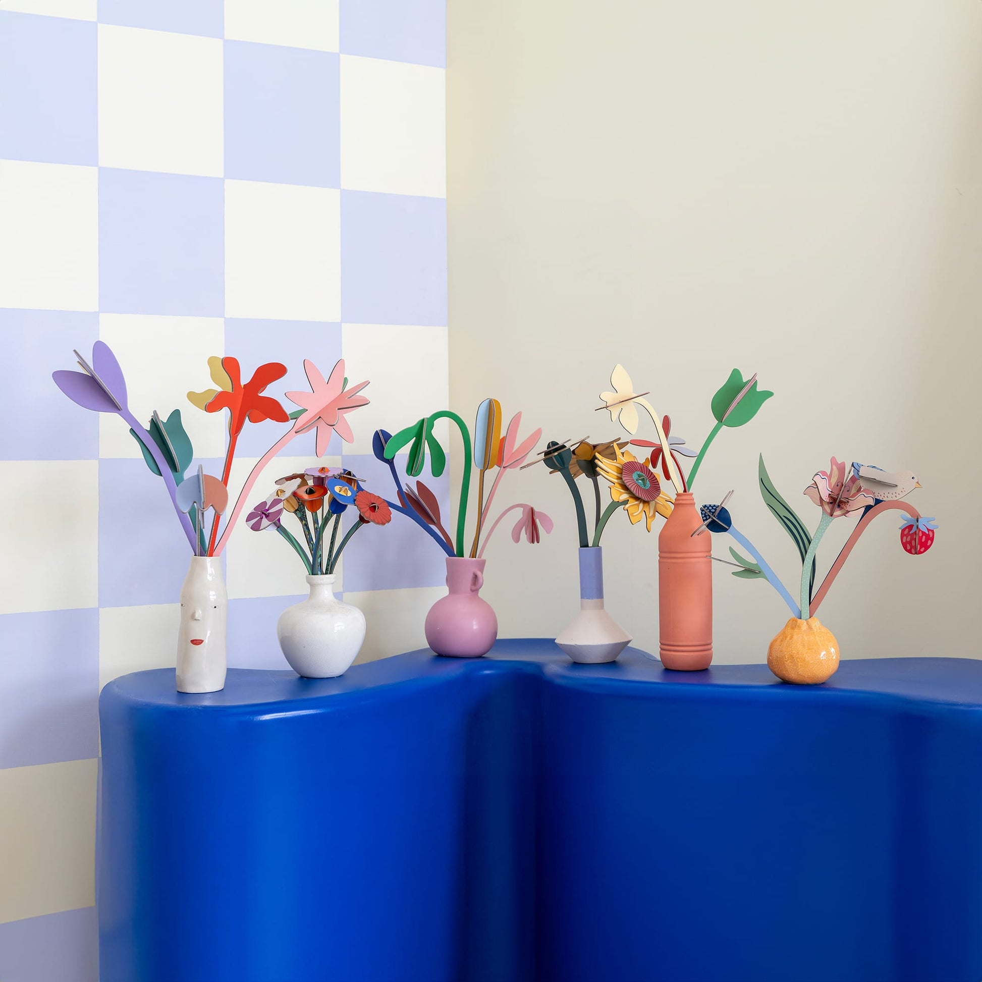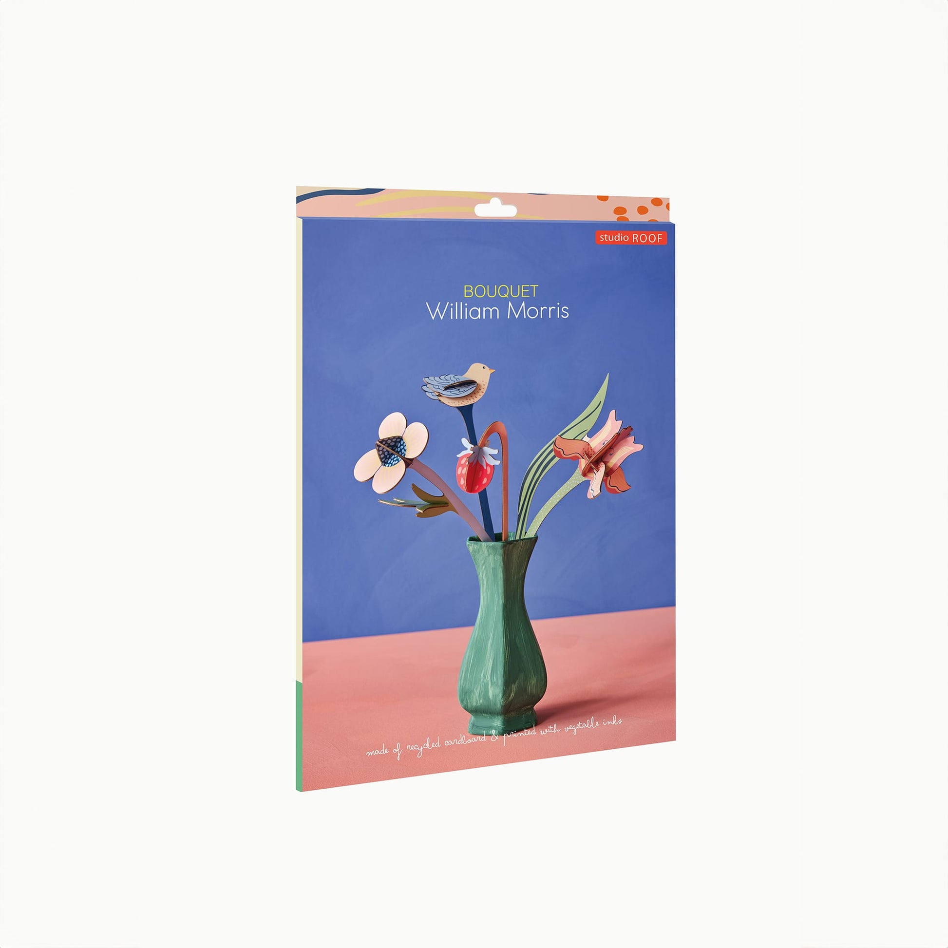 The William Morris Bouquet by Studio Roof bring the timeless beauty of Morris's floral masterpieces to life in three-dimensional form. Inspired by the organic shapes and colors that define his work, this nature-inspired art piece offers a stunning tribute to his vision. Crafted from recycled cardboard and printed with vegetable inks, this eco-friendly bouquet is easy to assemble and arrives flat-packed.