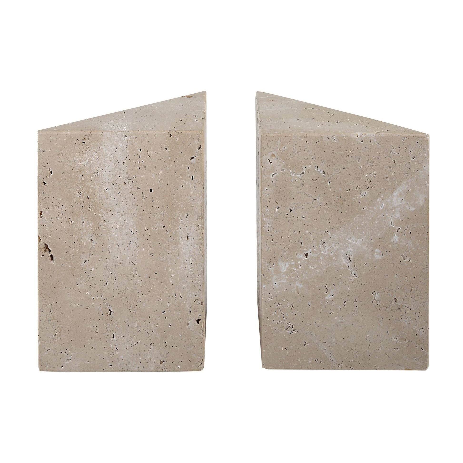 Thanks to its natural appeal and enduring charm, travertine is seeing renewed popularity in the world of interiors. A great fit in contemporary and transitional settings, this set of two travertine bookends will inject warmth, texture and visual interest to any bookshelf or table.