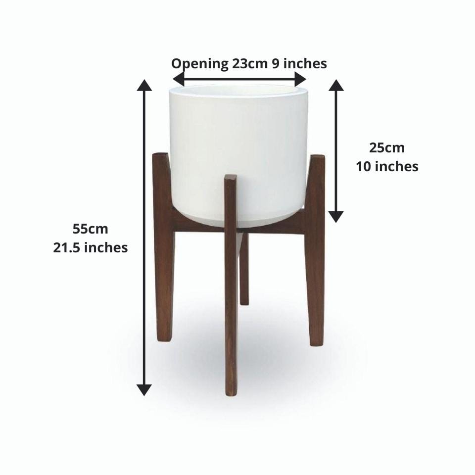 Boni White Mid - Century Cement Planter With Wooden Stand