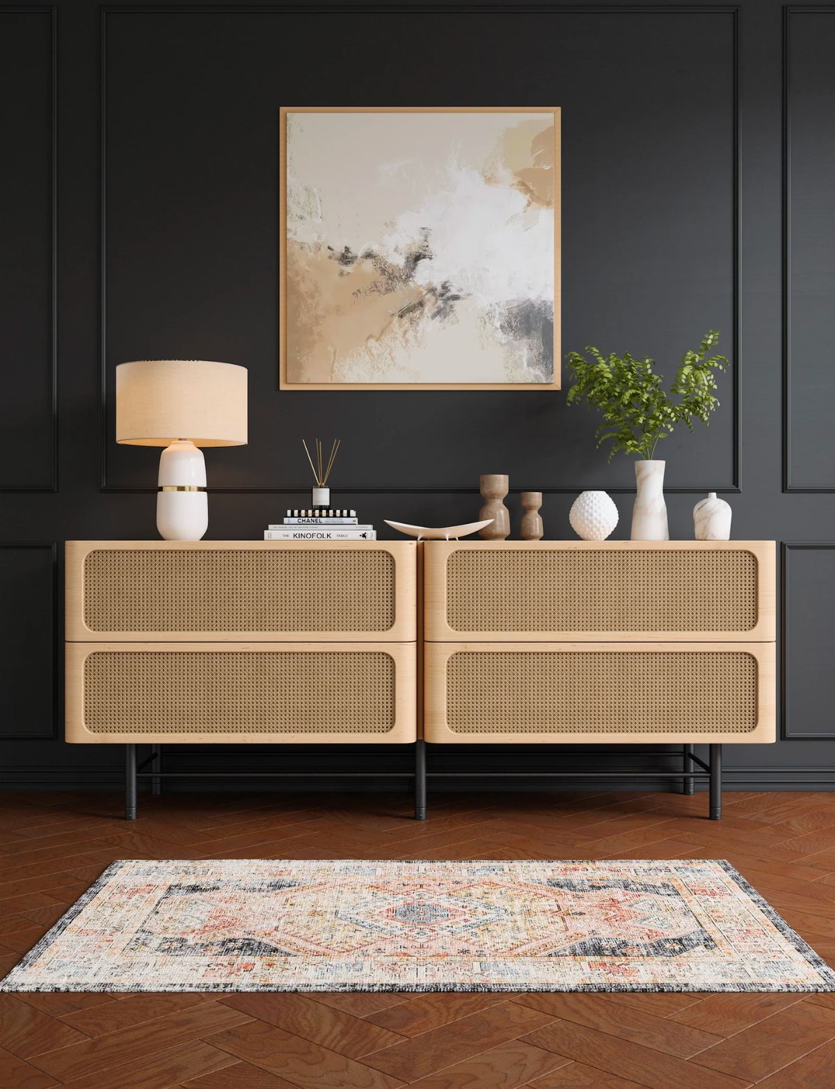 Caspara is a beautiful centerpiece with a Persian-inspired design and a range of sumptuous, saturated colors such as orange, black & coral. It effortlessly pairs with many different rug pads, making it a versatile choice for any room. The Caspara collection offers two options: machine washable rugs or premium linen rugs that are easy to clean (although not suitable for machine washing).
