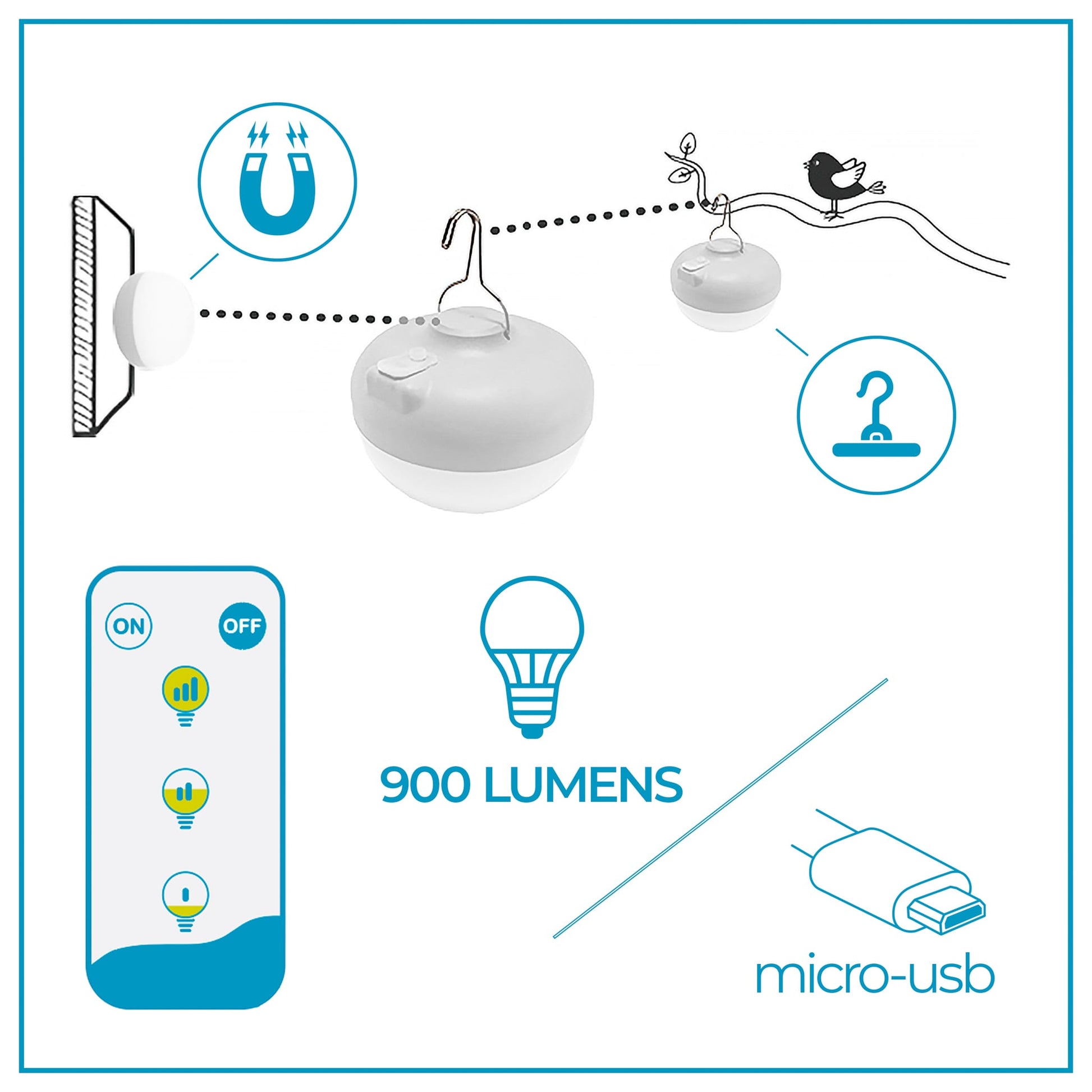 The Newgarden Cherry portable rechargeable bulb eliminates the need for installation; simply hang it or bring it close to a metallic surface, and its magnetized base will adhere to it. This bulb is also equipped with a remote control, allowing you to turn it on and off and adjust the intensity as needed.