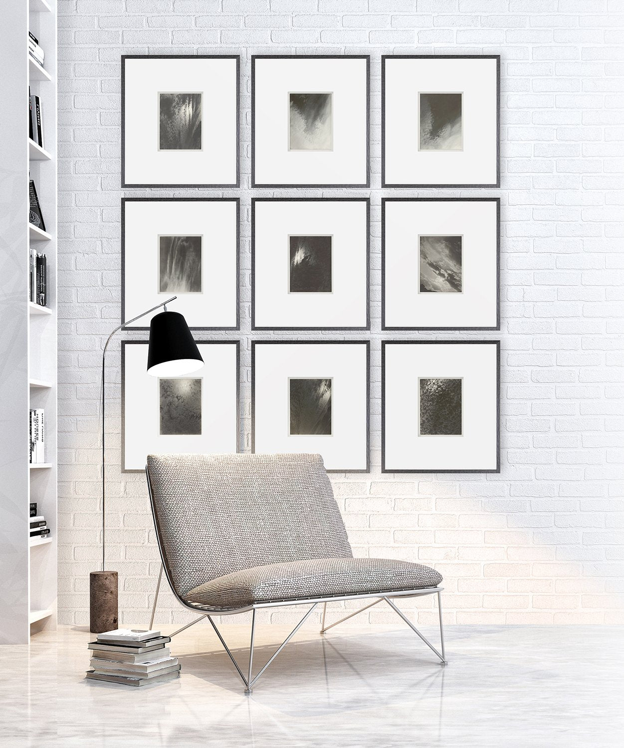 This series of 12 stunning photographs taken of clouds in the night sky by American Photographer Alfred Stieglitz, (who was married to Georgia O'Keefe), would be beautiful as a collection or as a stand alone. Framed under glass, with a wide matte and thin black frame, these pieces are unique.