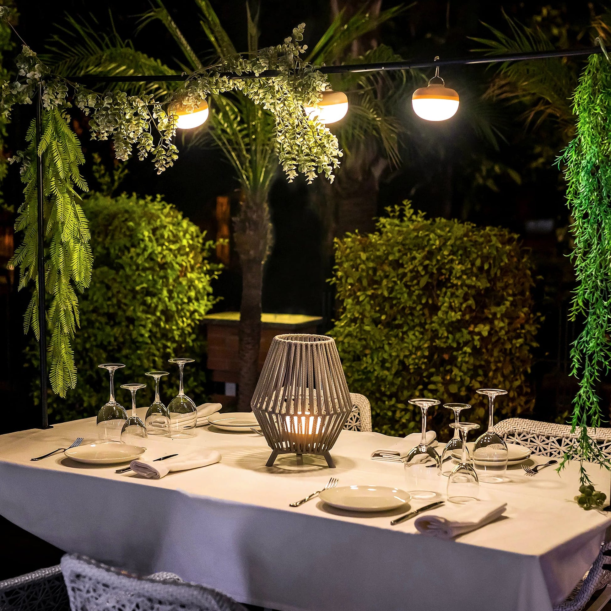 Newgarden's Conta cordless decorative lamp is crafted from recycled PVC, making it an eco-friendly lighting option. It's an excellent addition to brighten up any room or outdoor space, providing a unique touch. The lamp comes equipped with a 900 lumen portable rechargeable bulb that doesn't require any installation. Just bring it close to the lamp, and its magnetic base will attach it. The bulb comes with a remote control that allows you to turn it on/off and adjust its brightness.
