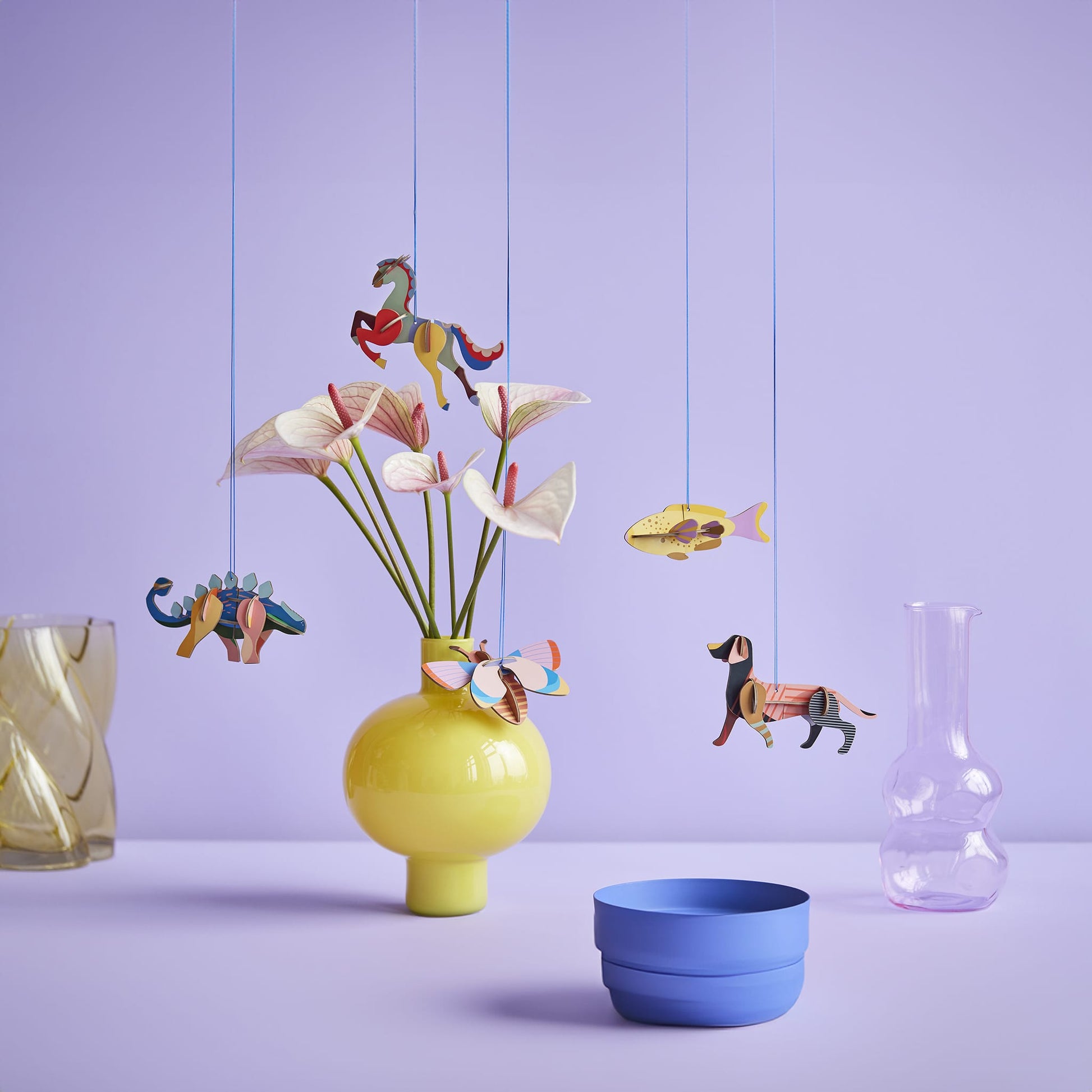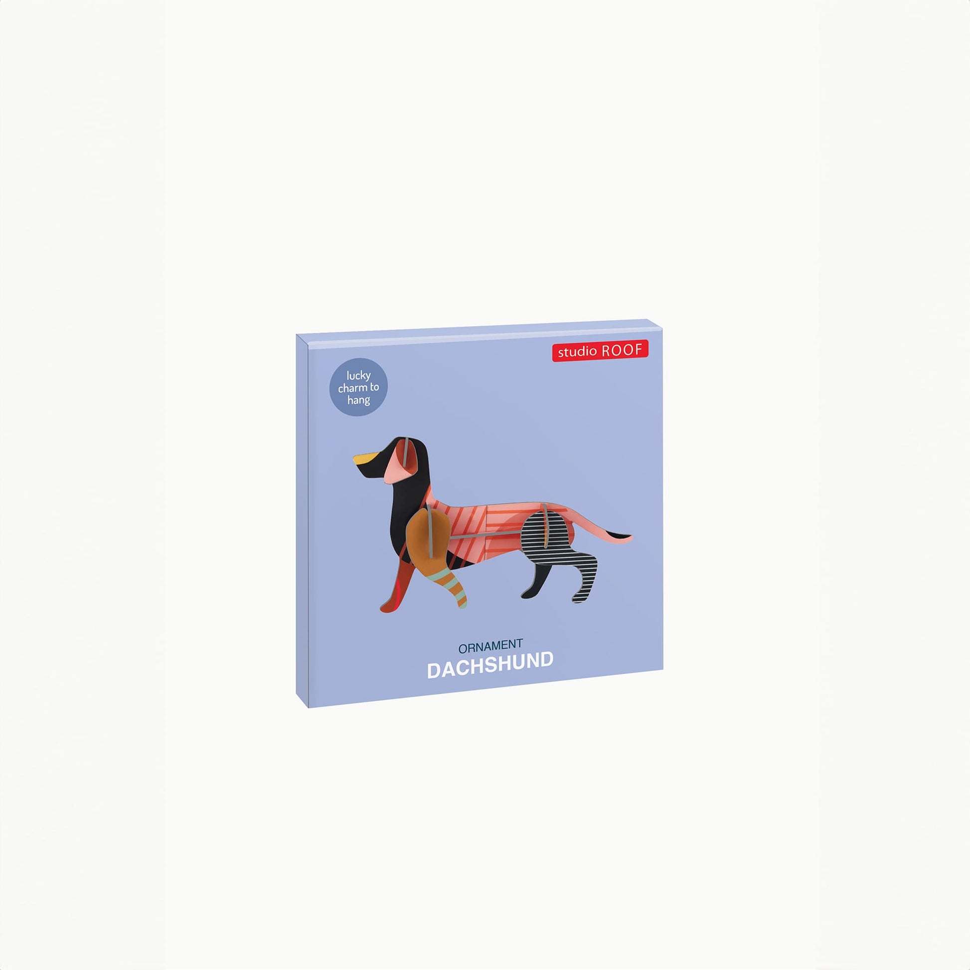 The Dachshund by Studio Roof is a charming 3D art piece and a delightful cardboard ornament, perfect for adding a playful touch to your decor. Crafted from eco-friendly recycled cardboard and printed with vegetable inks, this sweet ornament is designed for easy assembly and can be displayed anywhere—from a plant to a Christmas tree or a lamp.