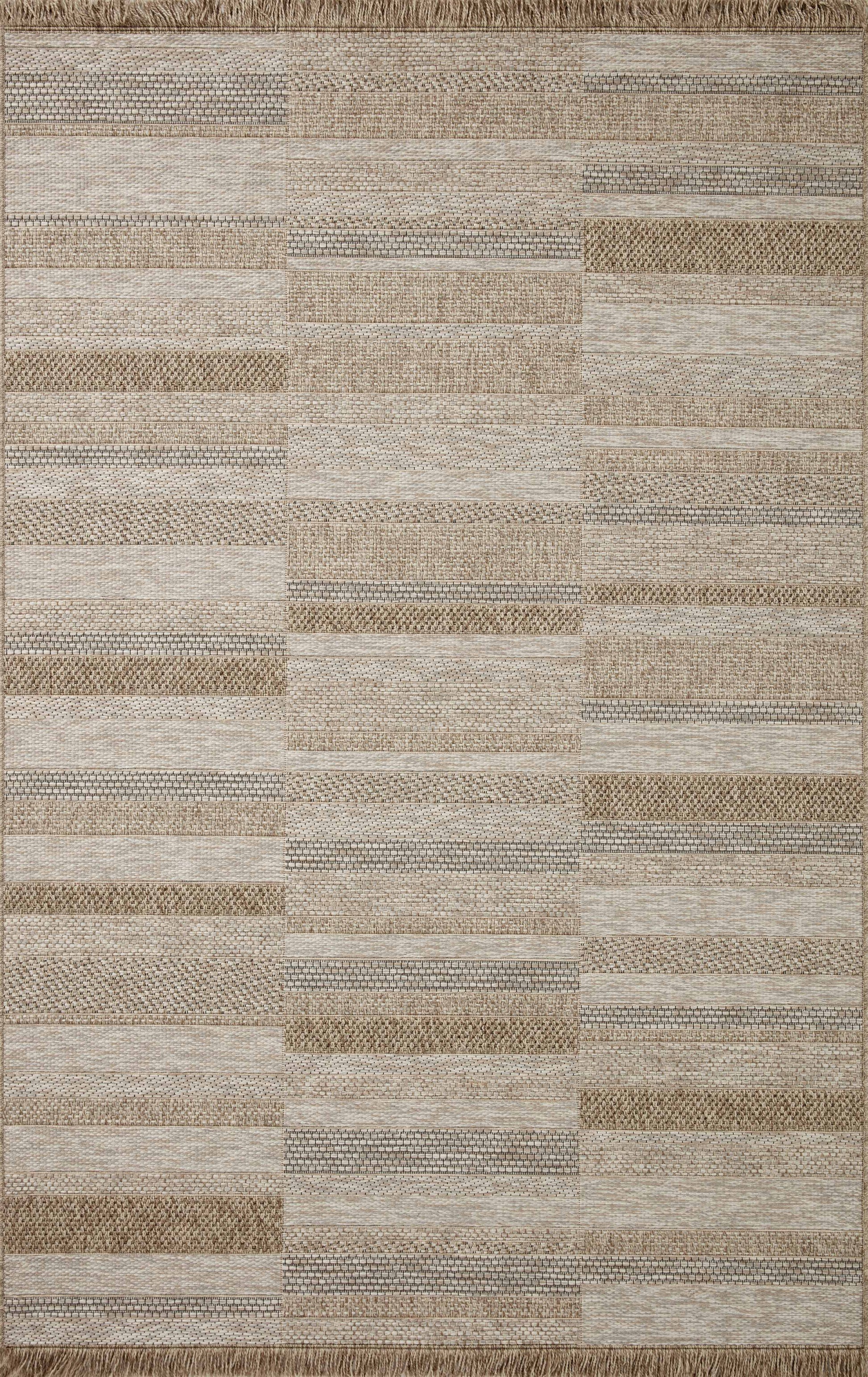 Made for sunny days ahead, the Dawn Collection is an indoor/outdoor rug that looks like a woven sisal rug but is power-loomed of 100% polypropylene, which makes it water- and mildew-resistant (so it's ready for rainy days ahead, too). Available in modern graphic patterns in tonal beige neutrals, Dawn has a short edge fringe that adds a playful and elevated feel to a rug that can handle a lot of foot (or paw) traffic whether outside on a patio or in a busy mudroom. Rinse off with a hose when needed.
