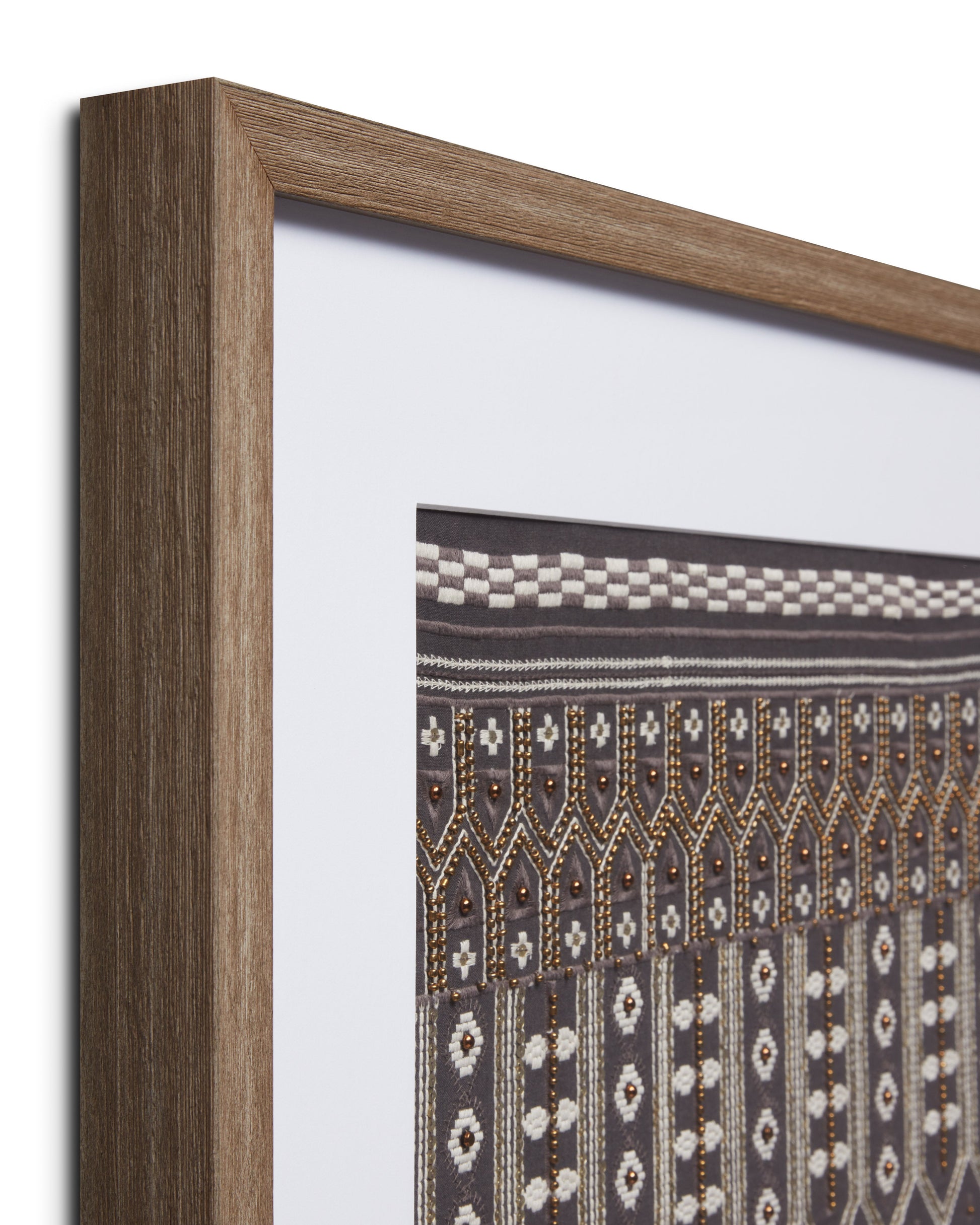 Diwali offers a great balance of exotic embroidered pattern and earthy and tranquil color in one elegant art piece. With artisanal craftsmanship and well-traveled appeal, this art piece feels like a rare treasure.