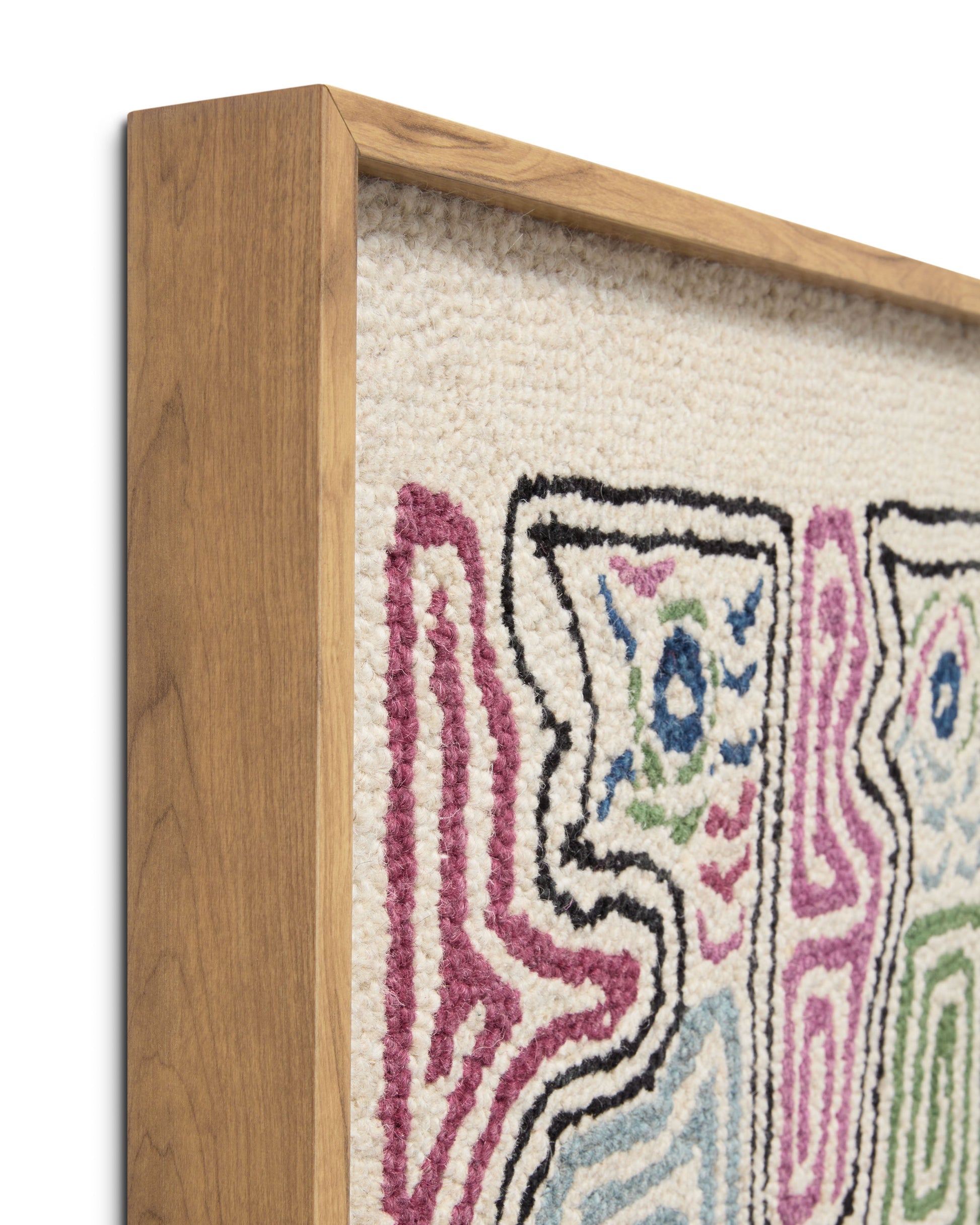 Inspired by the vibrant, stitched textiles known as Molas, this hooked wool framed wall art is the perfect mix of artisanship and modern day design. Add to an eclectic gallery wall or feature this folklore design alone as a central piece in any space.