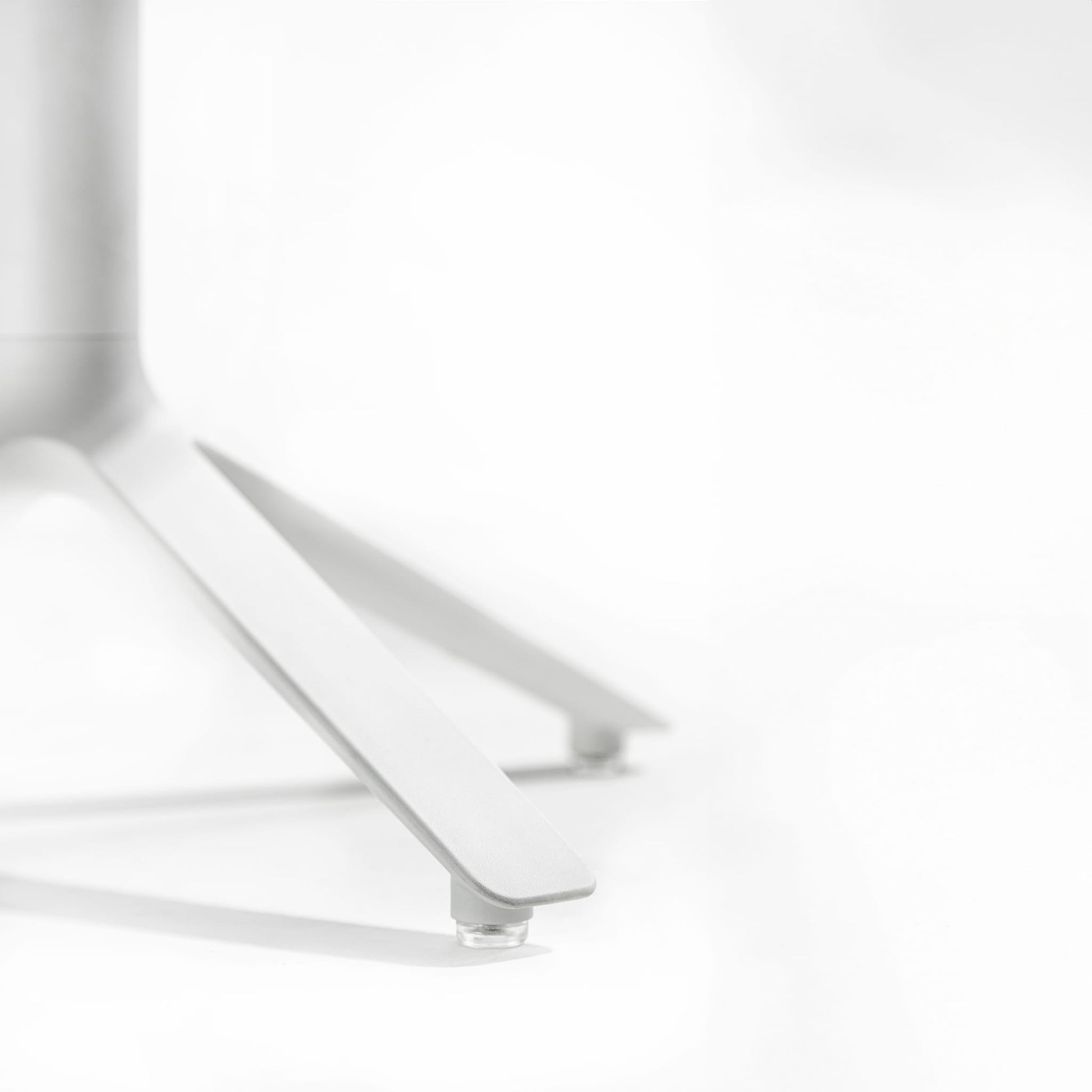 Eex presents a collection of contract tables that also have a certain vocation for domestic contexts, with square or round tops suitable for different uses: either as side or dining table, in the black, white or cool gray finish, in which plastic and metal components blend into a single colour. The top has no sharp corners or edges, and its shape is further emphasized by light, elegant outline. A soft, rounded shape that lets water drops and dew slip away, free of any grooves and unnecessary decorations, ideal for practical and comfortable use.