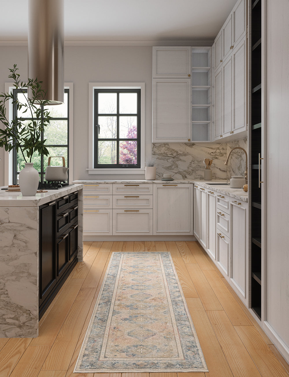 Elera is a beautiful centerpiece with a Persian-inspired design and a range of sumptuous, saturated colors such as light blue, beige and hints of red. It effortlessly pairs with many different rug pads, making it a versatile choice for any room. The Elera collection offers two options: machine washable rugs or premium linen rugs that are easy to clean (although not suitable for machine washing).
