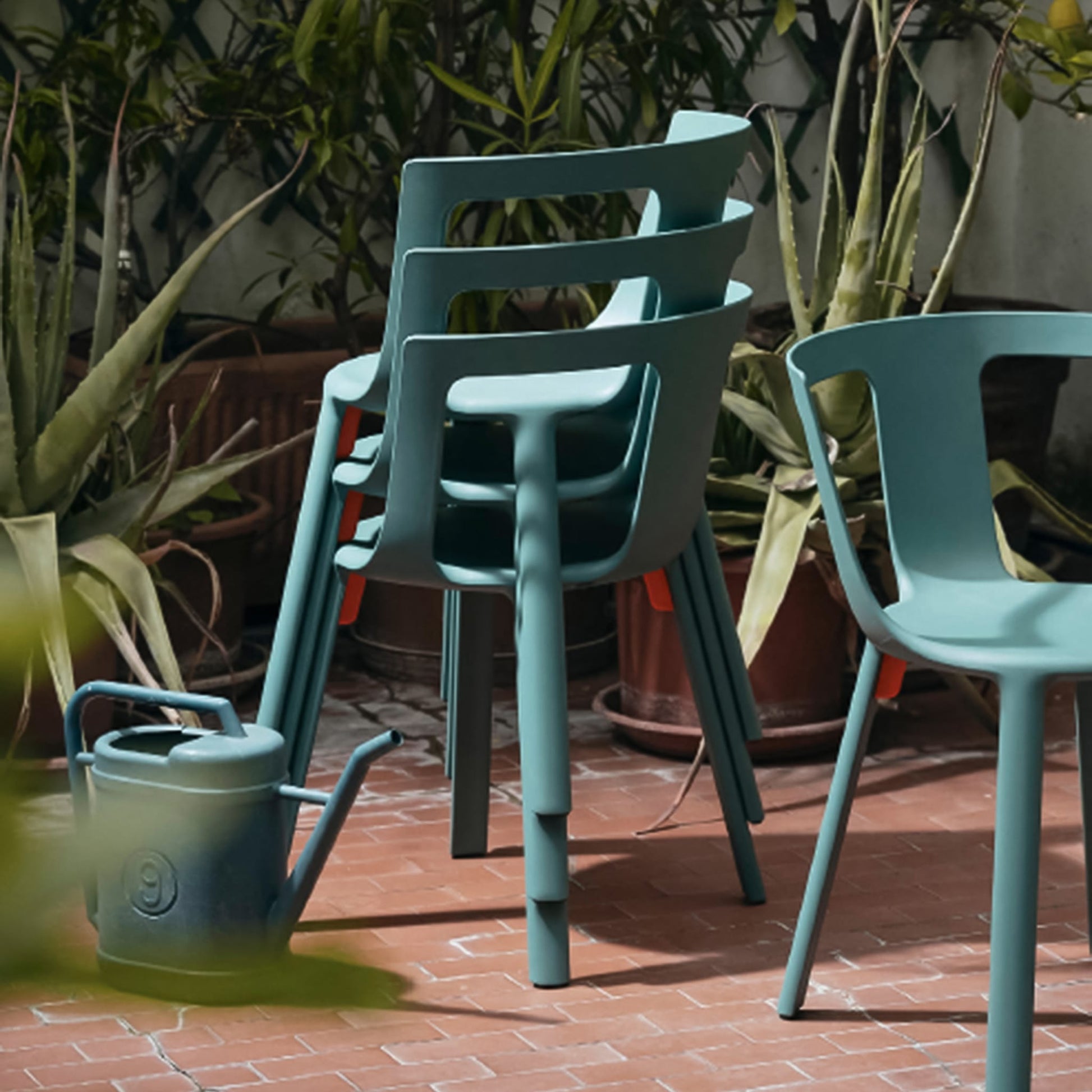 These chairs are a harmonious blend of lightness and adaptability. Each Fla chair tips the scales at slightly above 3 kilograms, ensuring ease of movement and repositioning. Its design allows for stacking up to six chairs, offering a practical solution for space-saving storage, ideal for events or spontaneous gatherings.