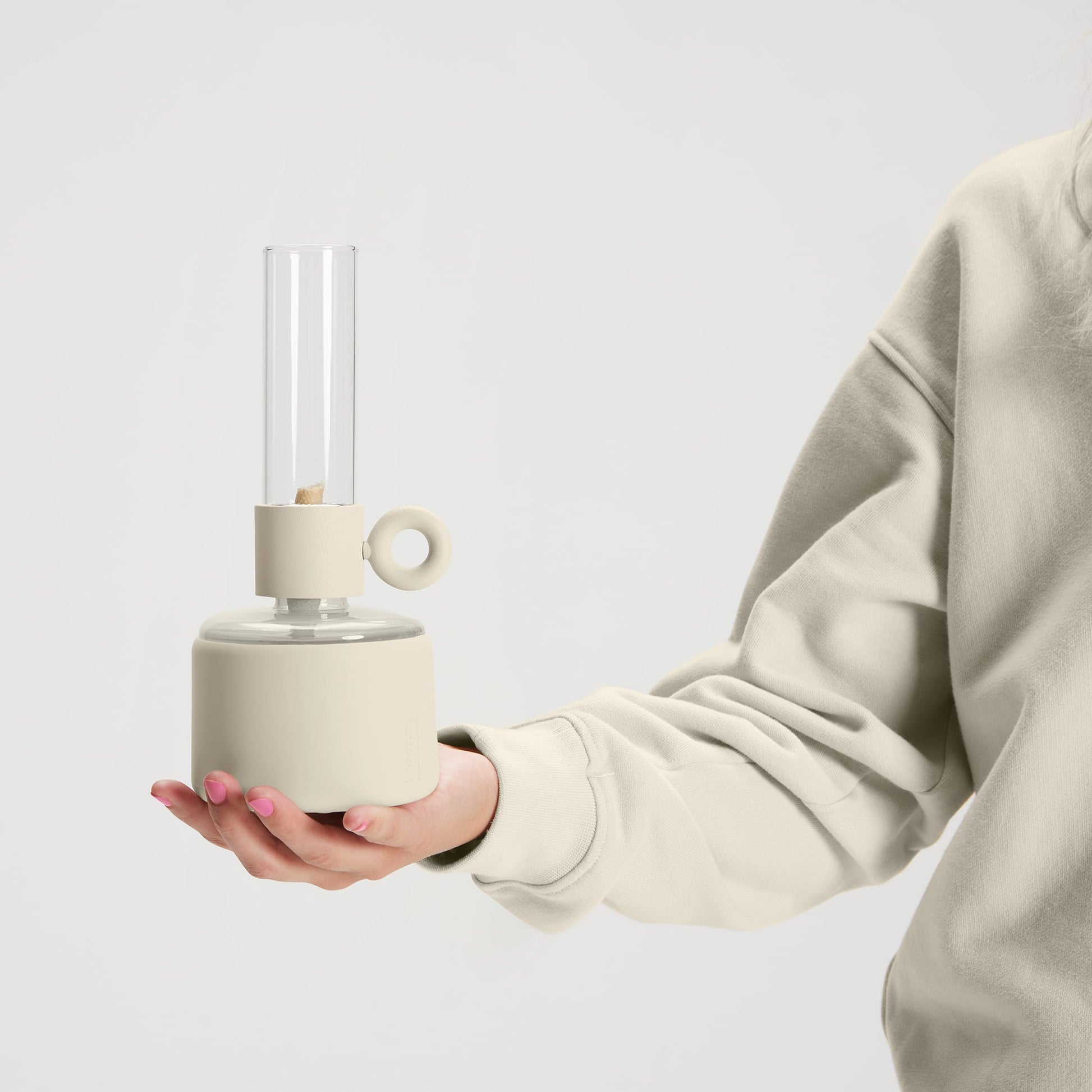 Create a cozy campfire vibe indoors with the Flamtastique XS by Fatboy. We've reimagined the traditional oil lamp, turning it into a sleek, modern design that's ideal for your tabletop. Powered by classic lamp oil, its transparent base makes it easy to monitor the oil level. The borosilicate glass body is finished with a matte silicone coating, offering both elegance and durability.