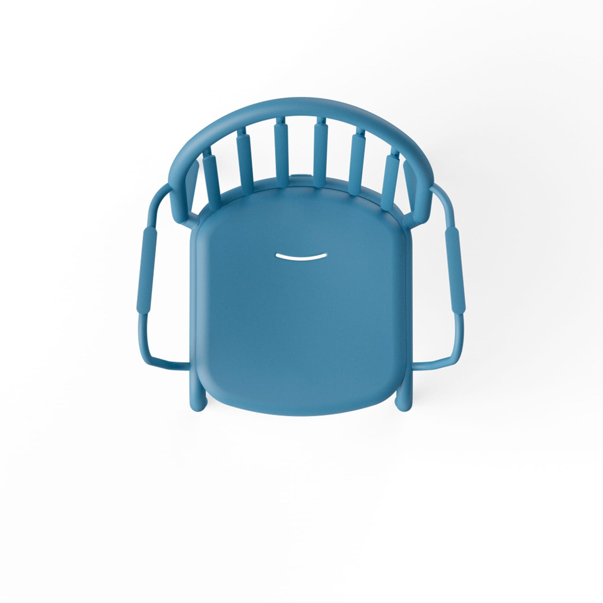 Beyond its stylish appearance, Fred’s Armchair is designed for convenience. The seat features a smile-shaped opening that quickly drains rainwater, eliminating the hassle of drying it after a shower. Lightweight and stackable—up to four chairs—it’s easy to store and move, making it a versatile addition to any outdoor space.