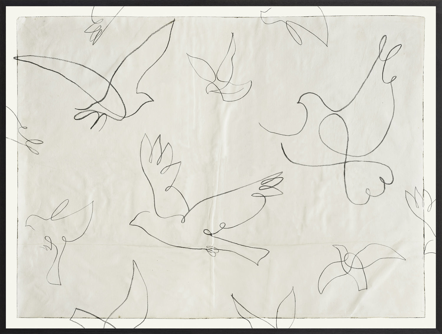 Mid Century inspired, playful birds in flight are rendered on textured paper. Great as an addition to a gallery grouping.