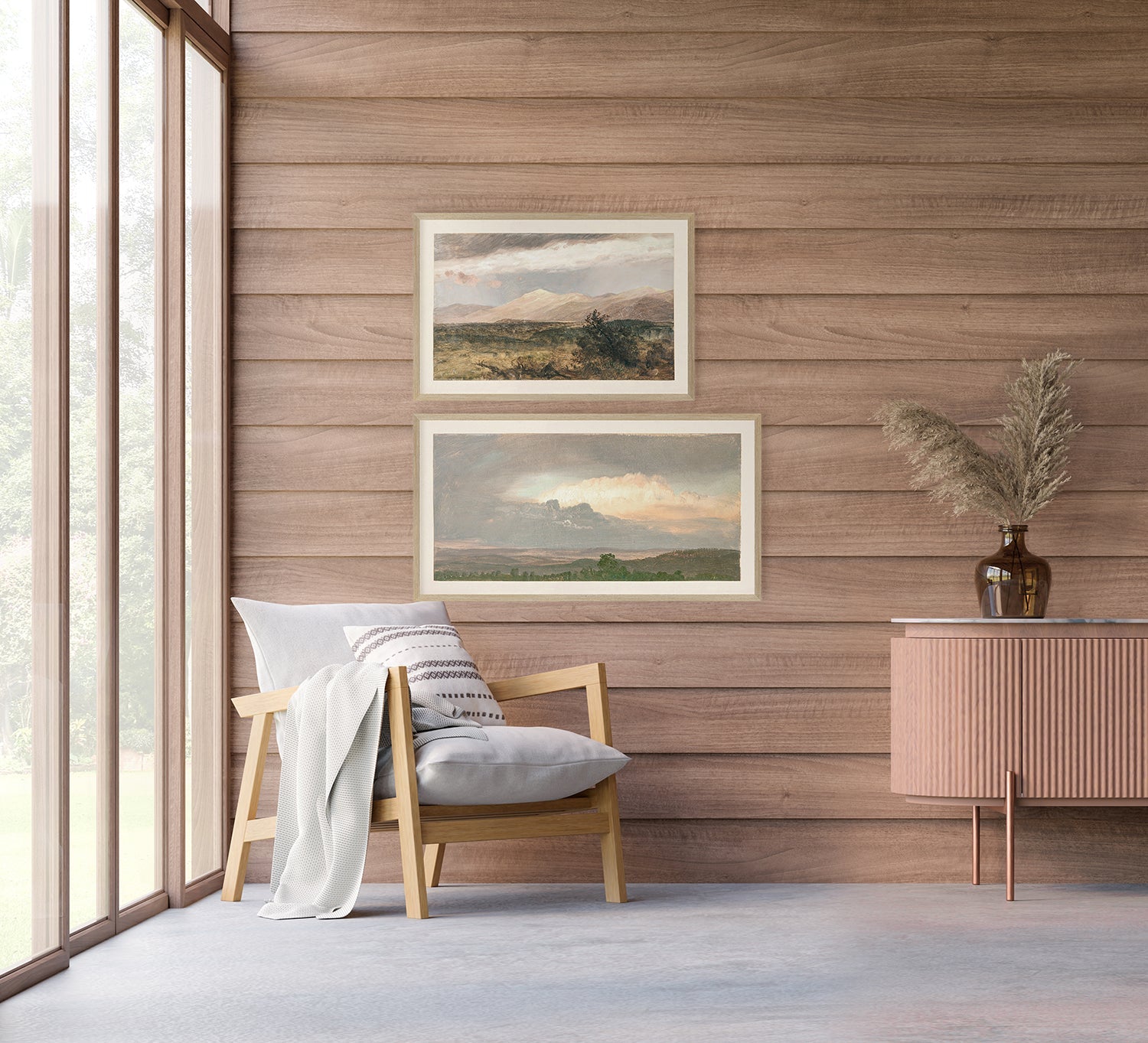 The majestic wilderness of North America was revered and romanticized by this group of 19th century landscape painters. The paintings in this collection from that time use a tranquil palette that can evoke a sweet pastoral feeling while still emphasizing the awesome power of these vistas.