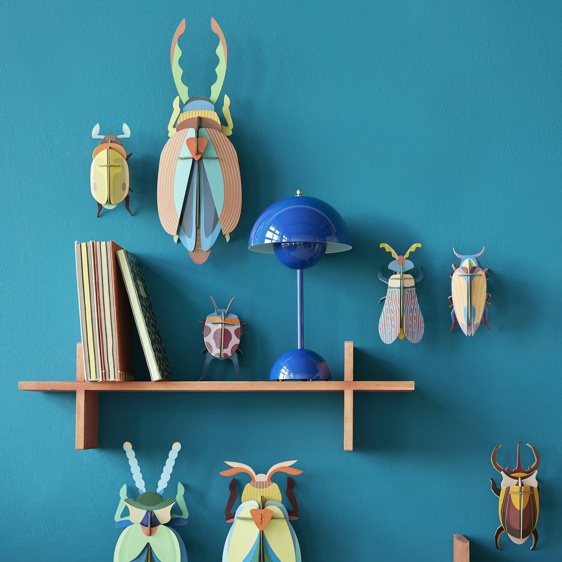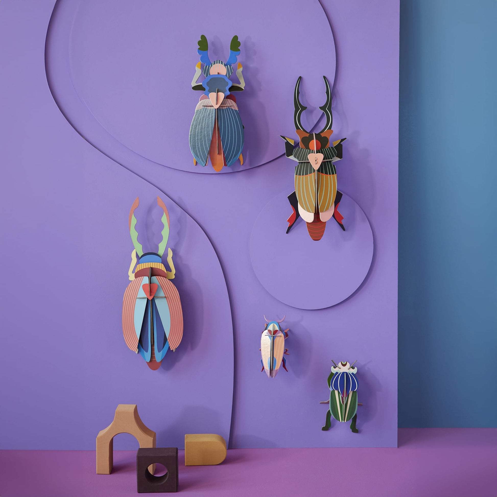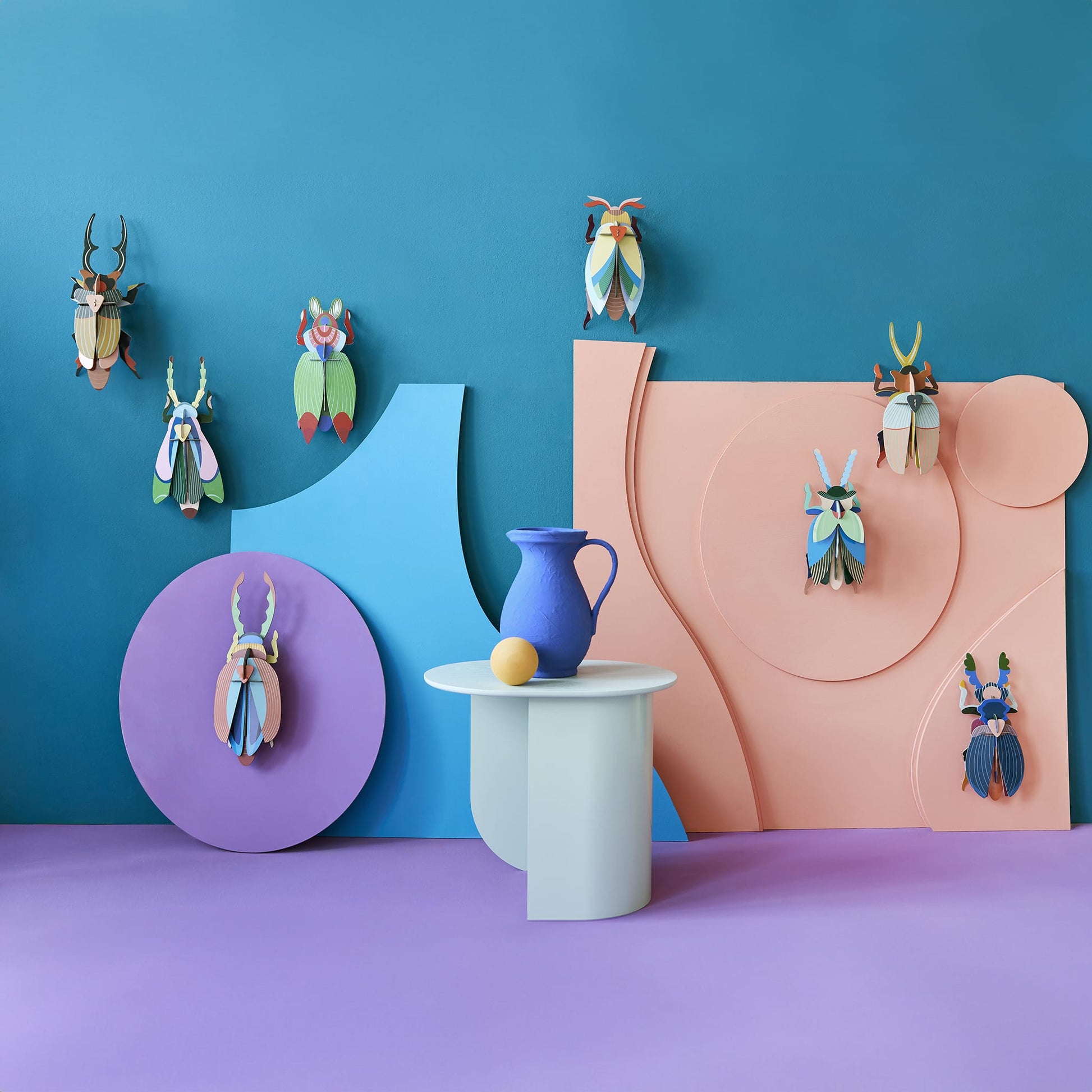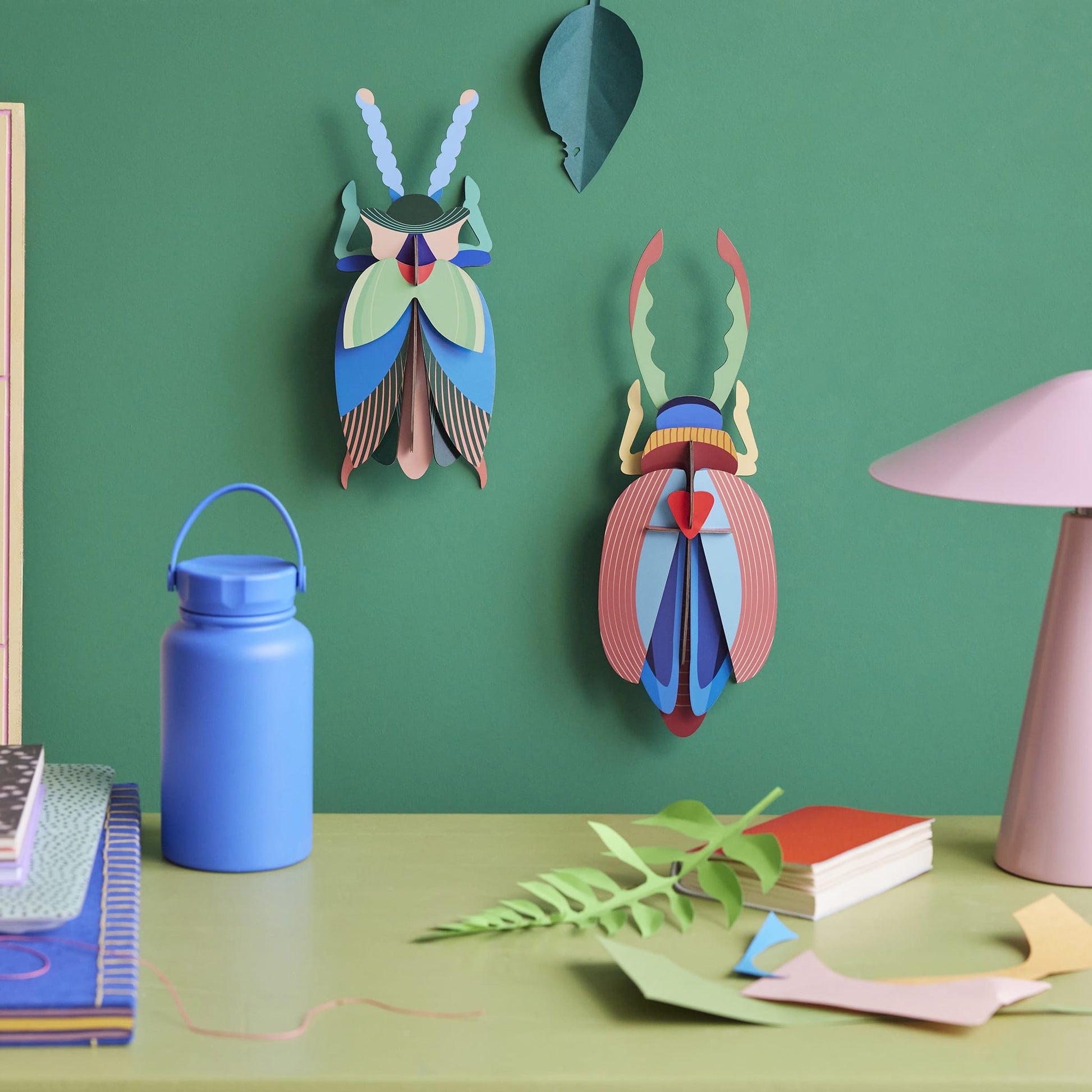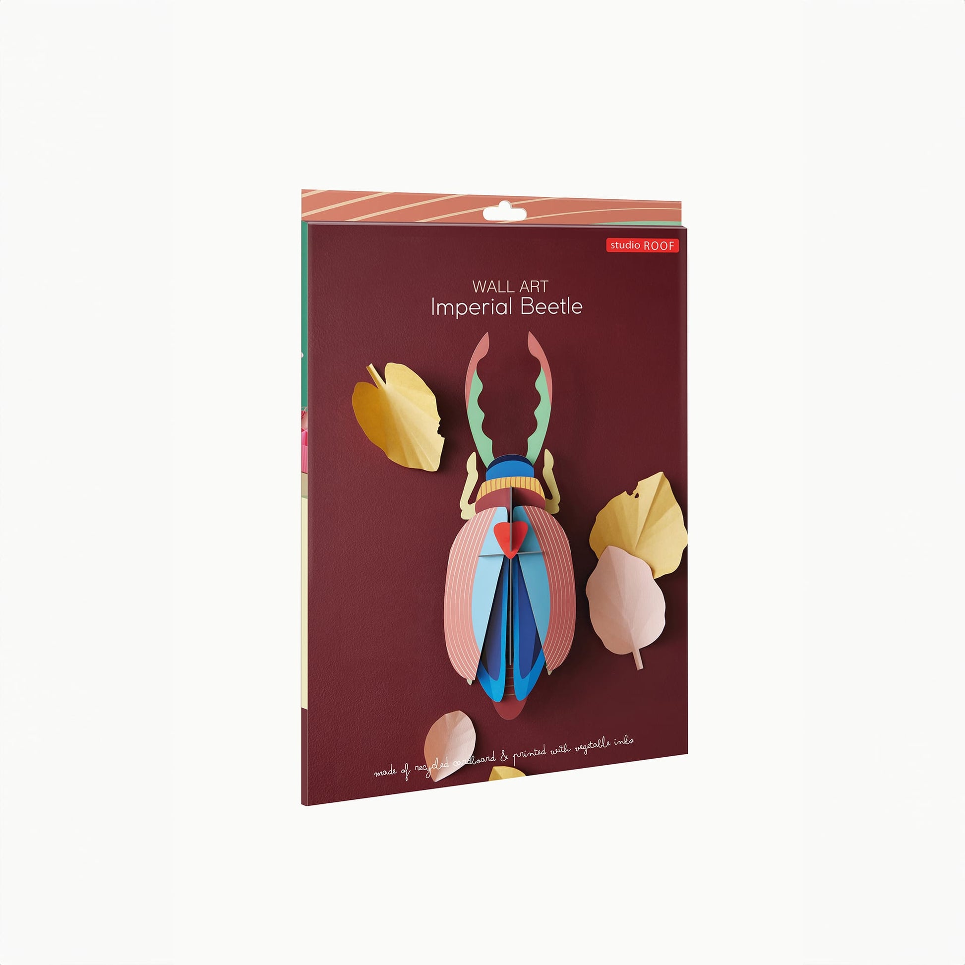 The Imperial Beetle by Studio Roof brings the vibrant beauty of nature into your home with a bold and colorful design. Crafted from recycled cardboard and printed with vegetable inks, this 3D wall art piece is both eco-friendly and artistic, perfect for nature-inspired decor. Unlike real beetles that scuttle unnoticed, this flamboyant insect demands attention, making a striking addition to your walls or tabletop.