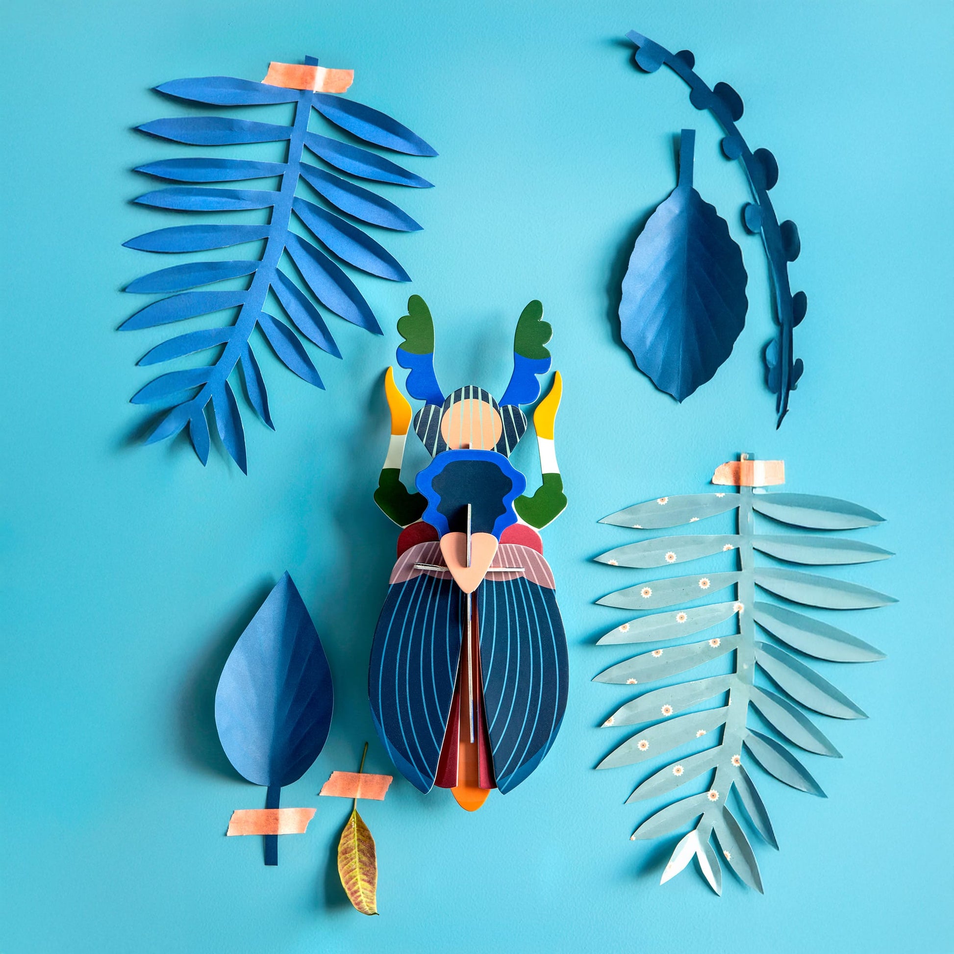 The Japanese Beetle by Studio Roof is a striking piece of nature-inspired 3D wall art that adds an exotic touch to your home. With its vibrant colors and bold design, this insect ornament draws inspiration from the fascinating world of beetles, bringing their beauty and importance to life. Crafted from eco-friendly recycled cardboard and printed with vegetable inks, this stunning decoration is both sustainable and artistic.