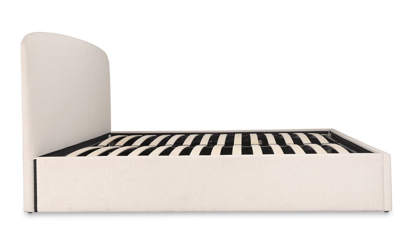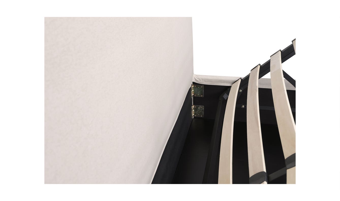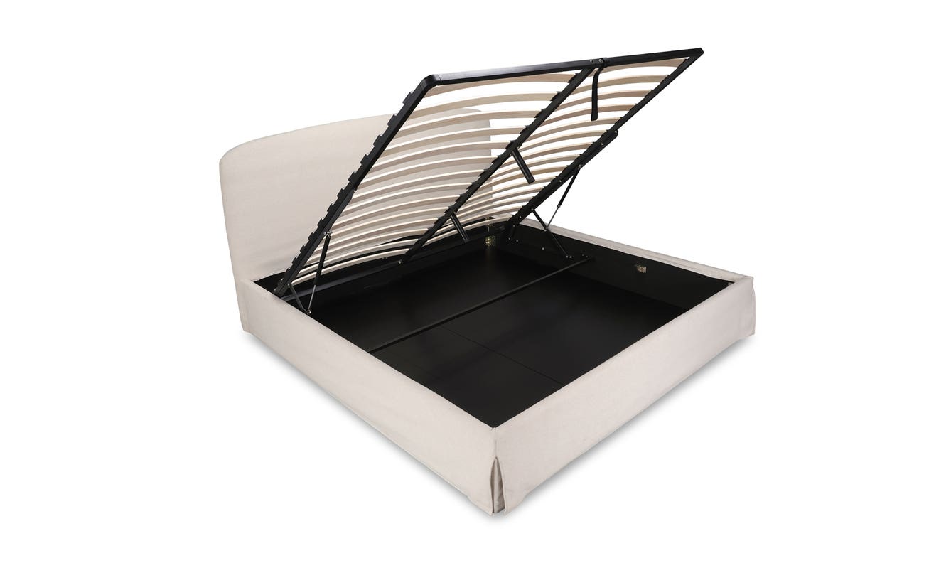 The Joan bed is more than meets the eye, with a hidden compartment that is tastefully innovative and easy to access. Beneath the mattress, a hydraulic system reveals ample storage space neatly tucked away, while a fully removable slipcover allows easy cleaning. The upholstered frame features the same fabric as the slipcover, so it can also be used on its own, providing two easy options to create the same classic look.