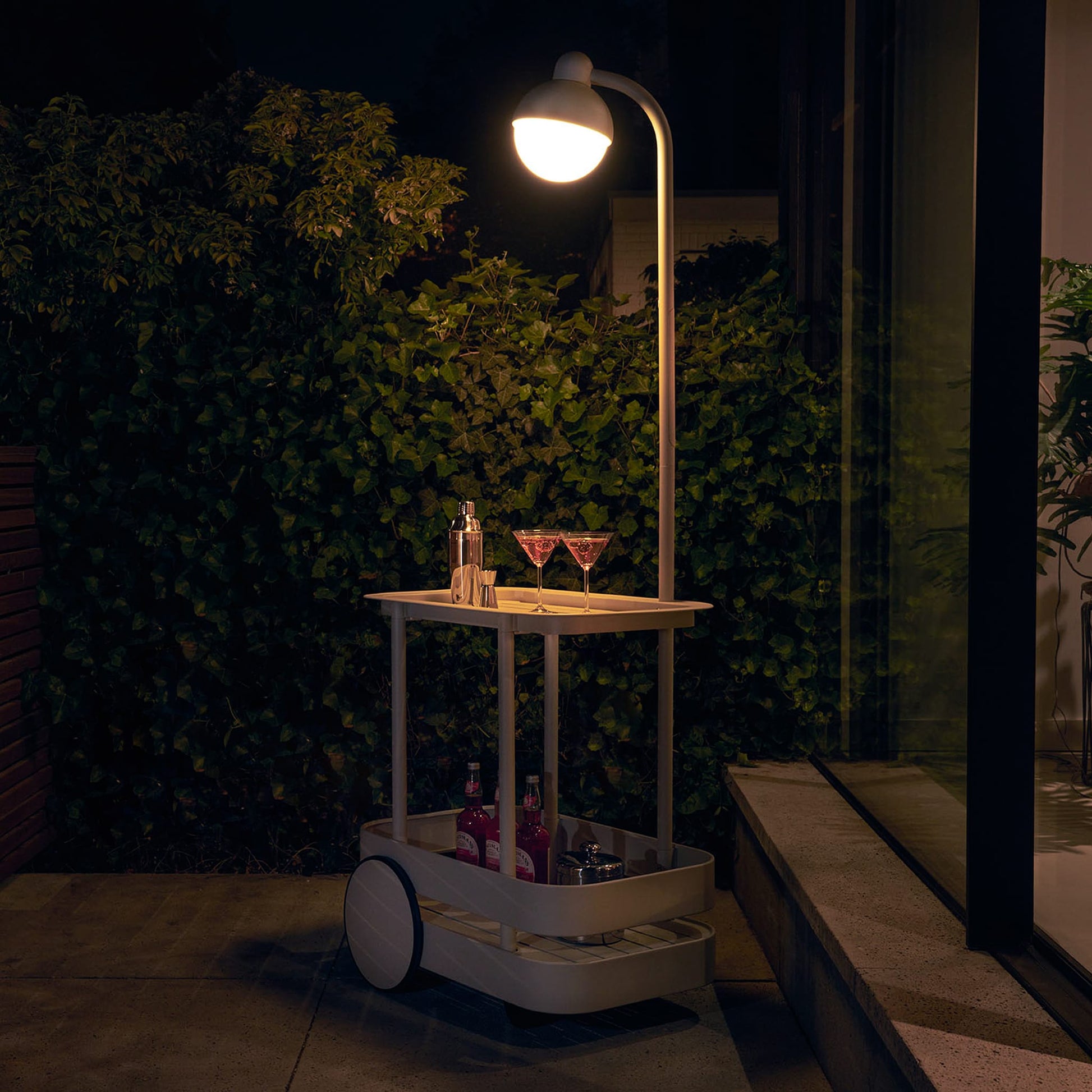 Discover the unexpected versatility of Jolly Trolley. Its removable upper tray effortlessly serves snacks and drinks, with easy cleanup for spills. Maneuver seamlessly with the vertical assistance handle, guiding the trolley among your guests. Plus, the integrated dimmable LED lamp, powered by a rechargeable battery, sets the perfect mood. Low on power? Simply detach and charge via the convenient USB-C connection indoors.