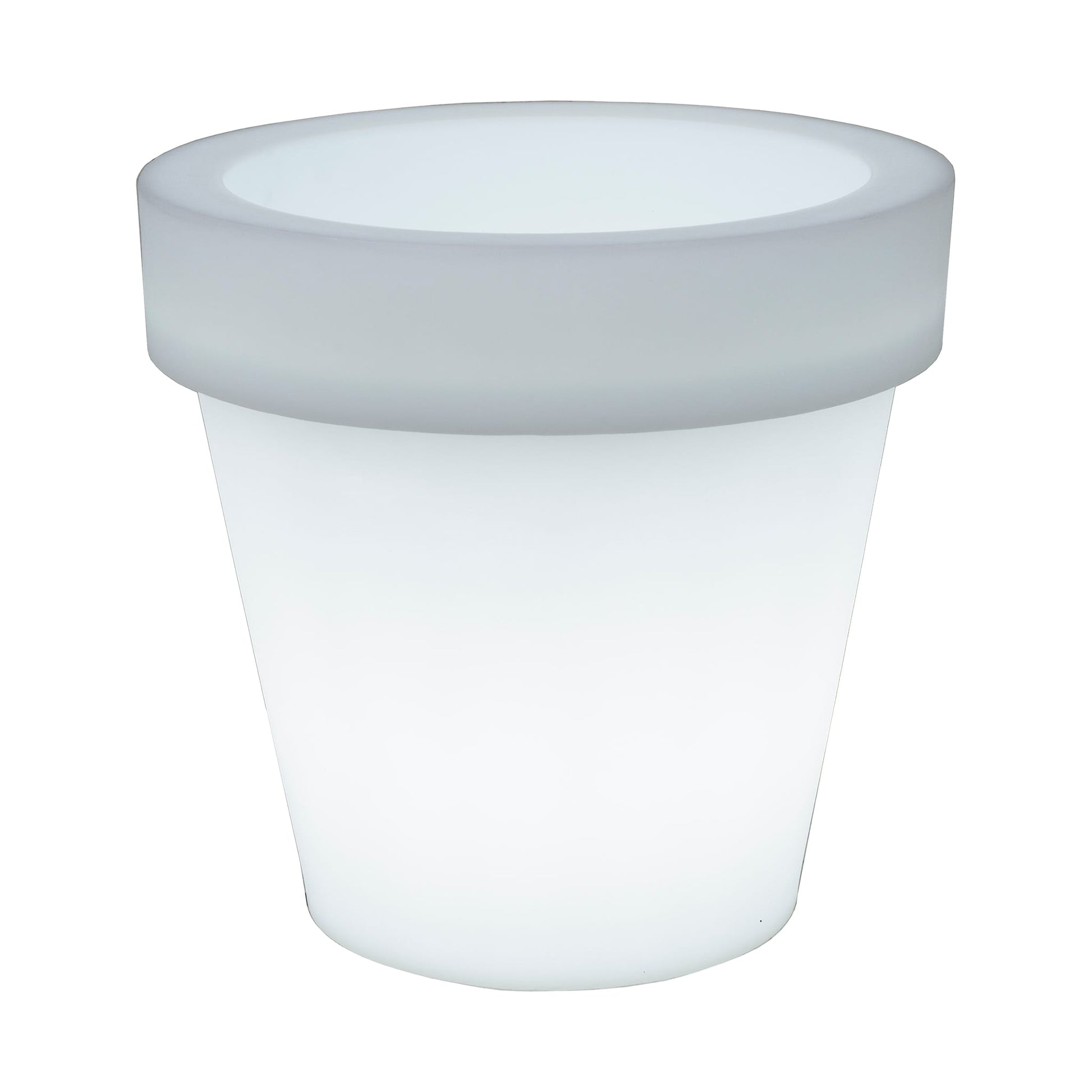 The Magnolia planter is notable for its sophisticated integrated lighting system, which operates on solar power as well as a rechargeable battery. It offers diverse lighting options with RGB and white hues, enabling it to illuminate for up to 6 hours using solar energy and extend up to 36 hours on electrical power. The remote-controlled functionality allows for easy adjustments, setting the perfect ambiance for any outdoor celebration or a serene evening at home. Emitting a soft radiance of 45 lumens, the Magnolia enhances the visual appeal of any plants it hosts.