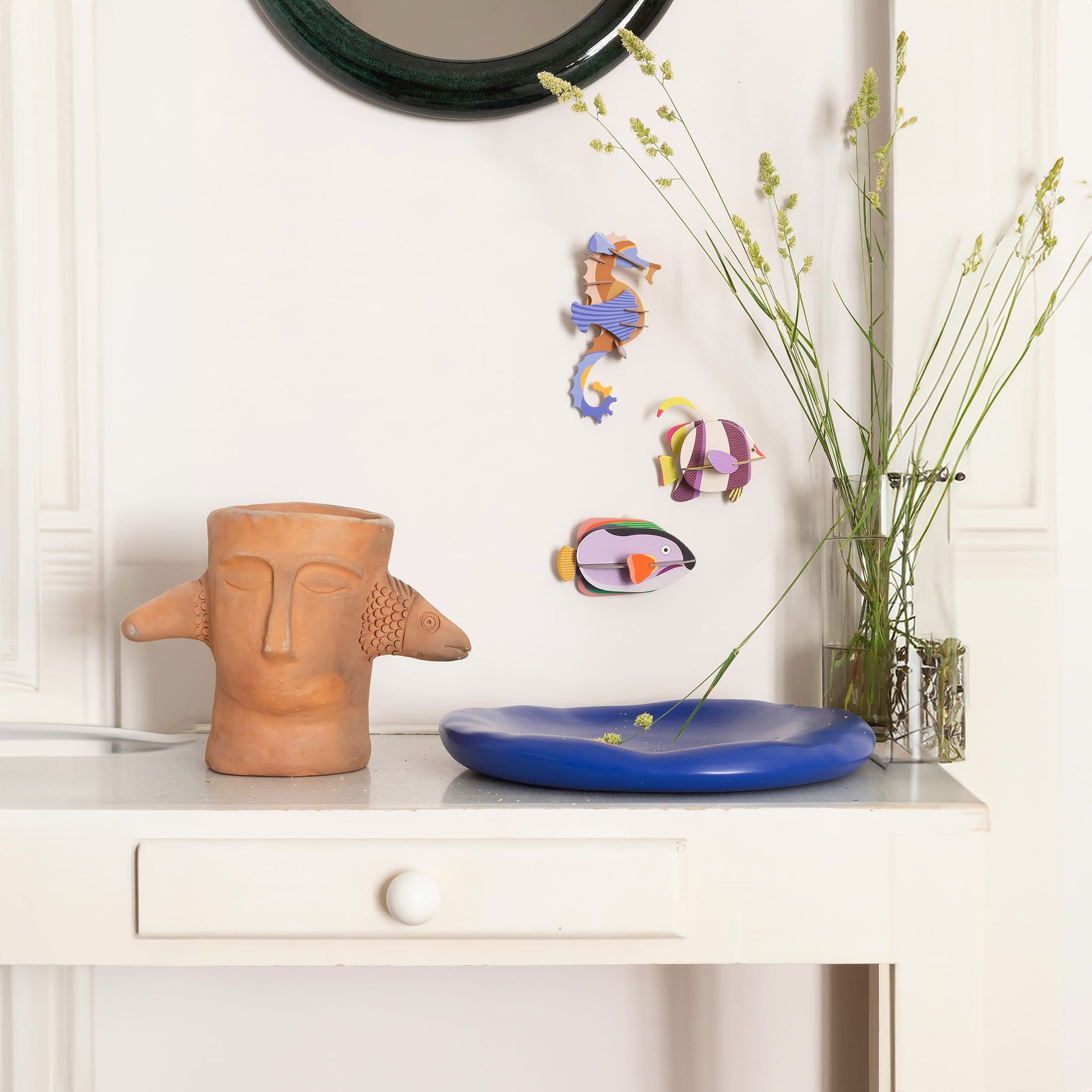 The Marine Angelfish by Studio Roof brings the vibrant and lively colors of the underwater world into your home. Inspired by tropical fish, this stunning 3D wall art piece captures the dynamic beauty of marine life. Crafted from recycled cardboard and printed with vegetable inks, it offers an eco-friendly and artistic addition to any space.